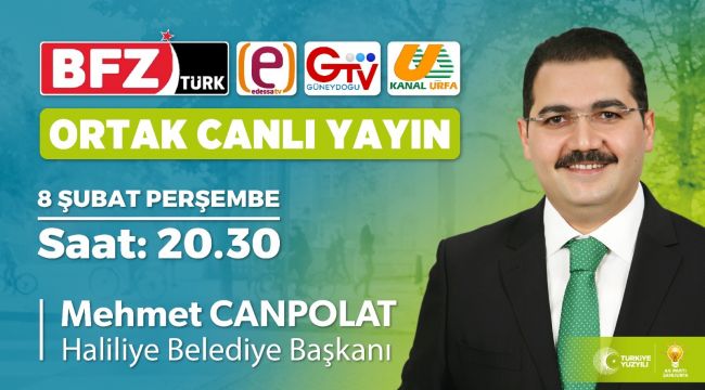 Haliliye Belediye Başkanı Mehmet Canpolat, 4 televizyon kanalının ortak canlı yayın konuğu oluyor.