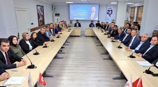 AK Parti Şanlıurfa İl Başkanlığını ziyaret eden AK Parti Genel Başkan Yardımcısı Mustafa Şen, AK Parti Şanlıurfa İl Başkanı Mehmet İlhami Günbegi, AK Parti Şanlıurfa Milletvekili Cevahir Asuman Yazmacı, AK Parti MKYK Üyesi Mehmet Ali Kurt ve parti teşkilatıyla bir araya geldi, teşkilat saha çalışmaları hakkında bilgi aldı.