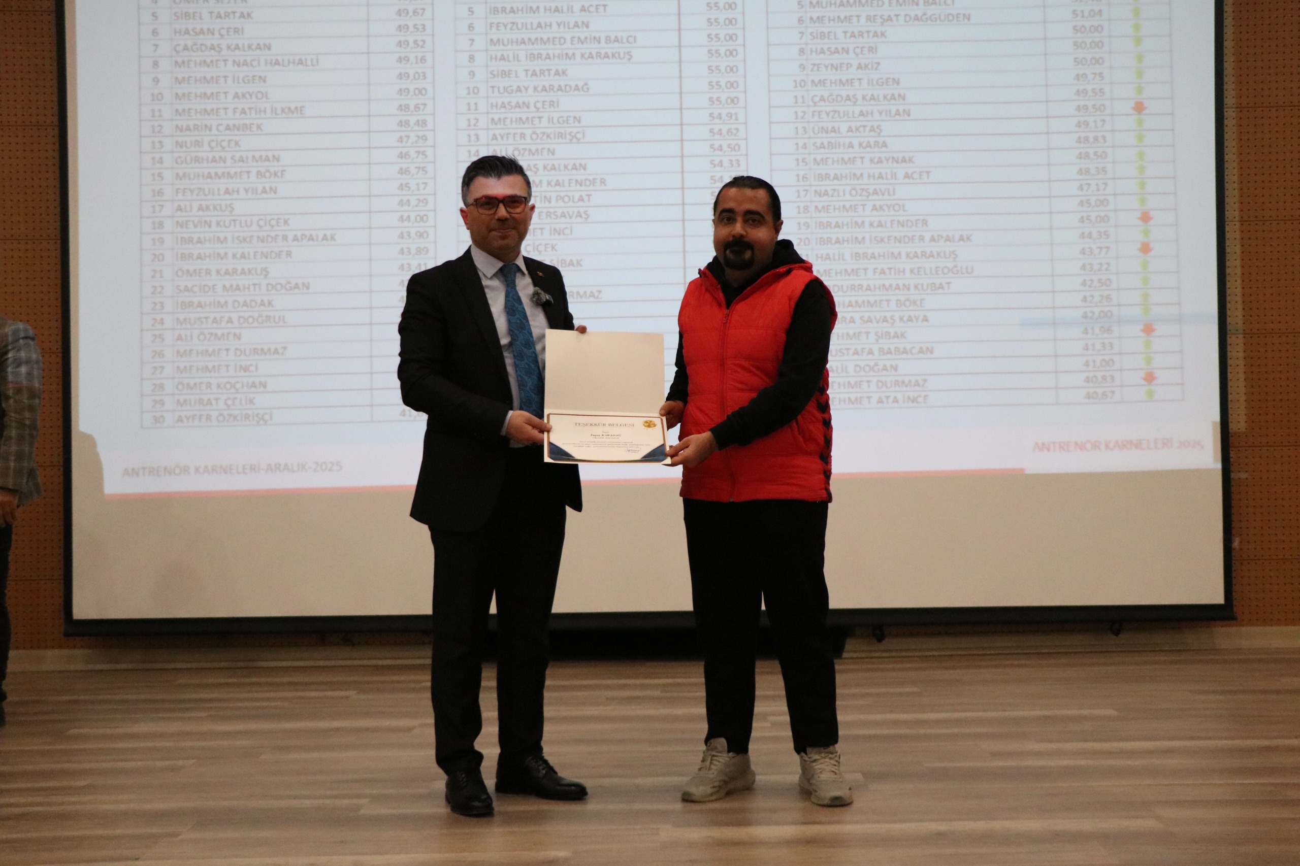 antrenöre başarı belgesi takdim edildi.