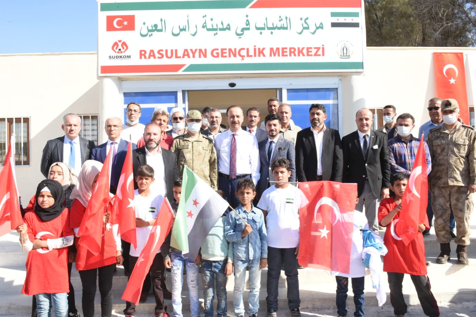 Barış Pınarı bölgesinde yapımı tamamlanan Resulayn Gençlik Merkezi, semt sahası ve yüzme havuzu ile Telabyad’da yapımı tamamlanan spor tesisleri, düzenlenen törenlerle hizmete açıldı.