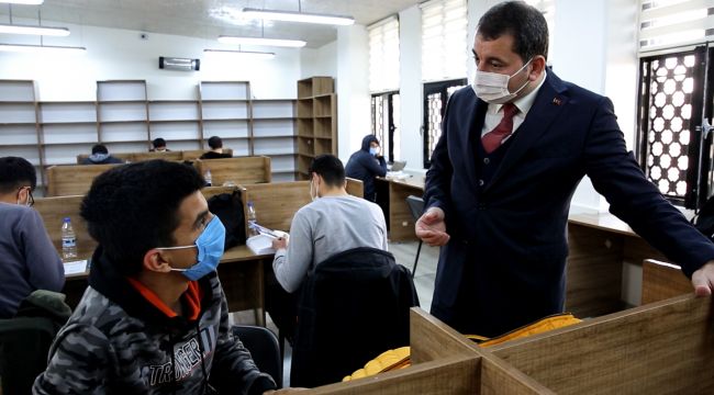 Karaköprü ’deki okuma salonlarını ziyaret eden Başkan Baydilli burada ders çalışan ve sınavlara hazırlanan gençlere kitap hediyesinde bulunurken, gençlerle bir süre sohbet edip Çanakkale Zaferi’ni anlattı.