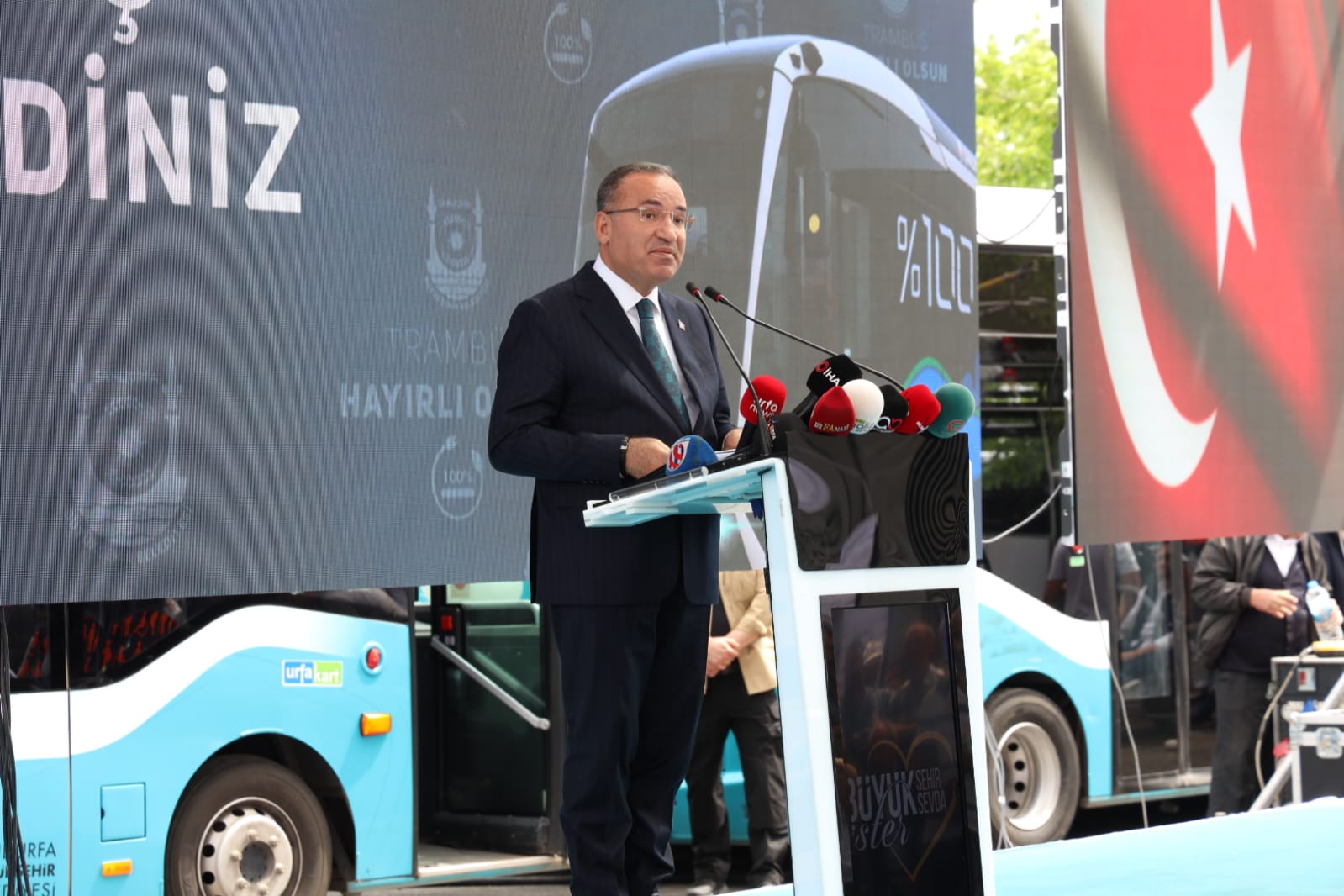 trambüsler sefere çıktı. Adalet Bakanı Bekir Bozdağ trambüse binerek direksiyon