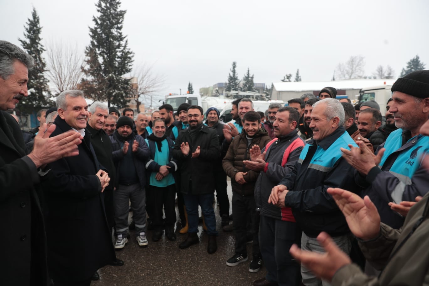Şanlıurfa Büyükşehir Belediye Başkanı Zeynel Abidin Beyazgül, karla mücadelede etkin görev yapan personellerle de bir araya sohbet etti. Personellerin alkışlarıyla karşılanan Başkan Beyazgül, her zaman personellerin yanlarında yer aldıklarını ifade etti.