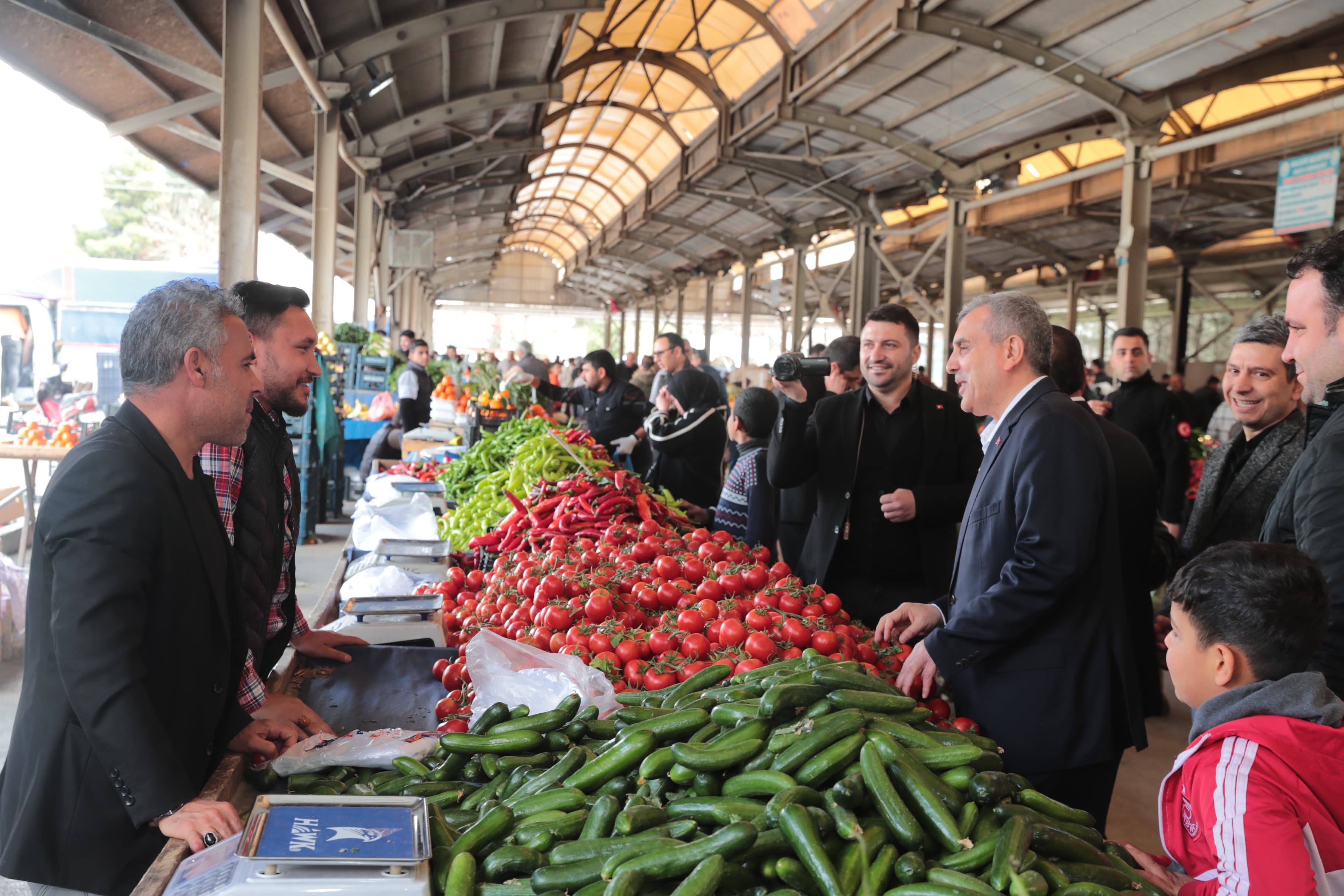 Selahaddin Eyyubi Mahallesinde esnaf ve vatandaşlarla bir araya gelen Başkan Beyazgül, ardından AK Parti Haliliye İlçe Başkanı Mustafa Bağmancı ve Şanlıurfa Semt Pazarcılar Dernek Başkanı Hacı Keser ile birlikte cumartesi semt pazar esnafını ziyaret etti. Burada satış yapan esnaflara hayırlı işler dileklerini ileten Başkan Beyazgül Pazar alışverişini de yaptı.