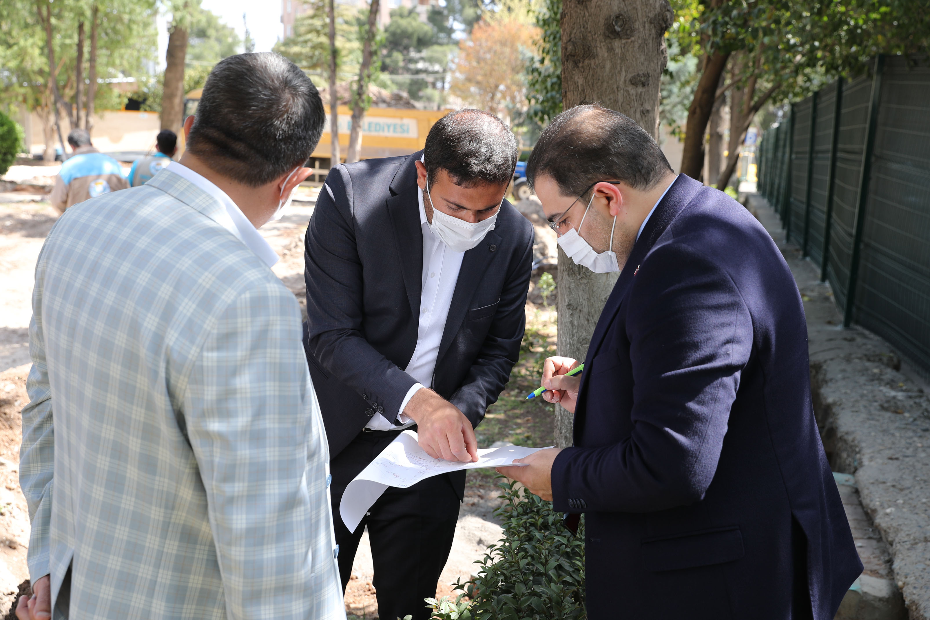 Başkan Mehmet Canpolat, açıklamaların ardından parkta yenileme çalışmalarını yürüten işçilerle de sohbet etti.