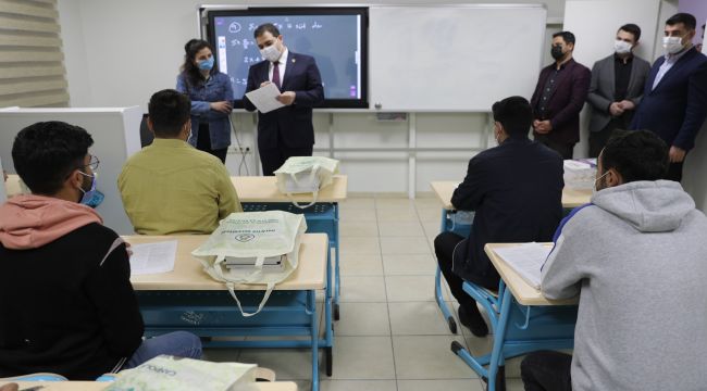 Başkanı Mehmet Canpolat, gençlerin eğitimine destek vermek, sunanlara hazırlanan gençler için yürütülen çalışmalara desteğini devam ettiriyor. Kültür ve Sosyal İşler Müdürlüğüne bağlı Bahçelievler Gençlik ve Eğitim Merkezinde Kovid-19 tedbirleri kapsamında yürütülen Yükseköğretim Kurumları Sınavı (YKS) hazırlık kursuna katılan 600 öğrenci için Milli Eğitim Bakanlığı tarafından onaylı soru bankası seti hazırlandı. Bahçelievler Gençlik ve Kültür Merkezindeki gençler ile bir araya gelen Başkan Canpolat, burada öğrenciler ile sohbet ve kendileri için hazırlanan kitapları hediye etti.