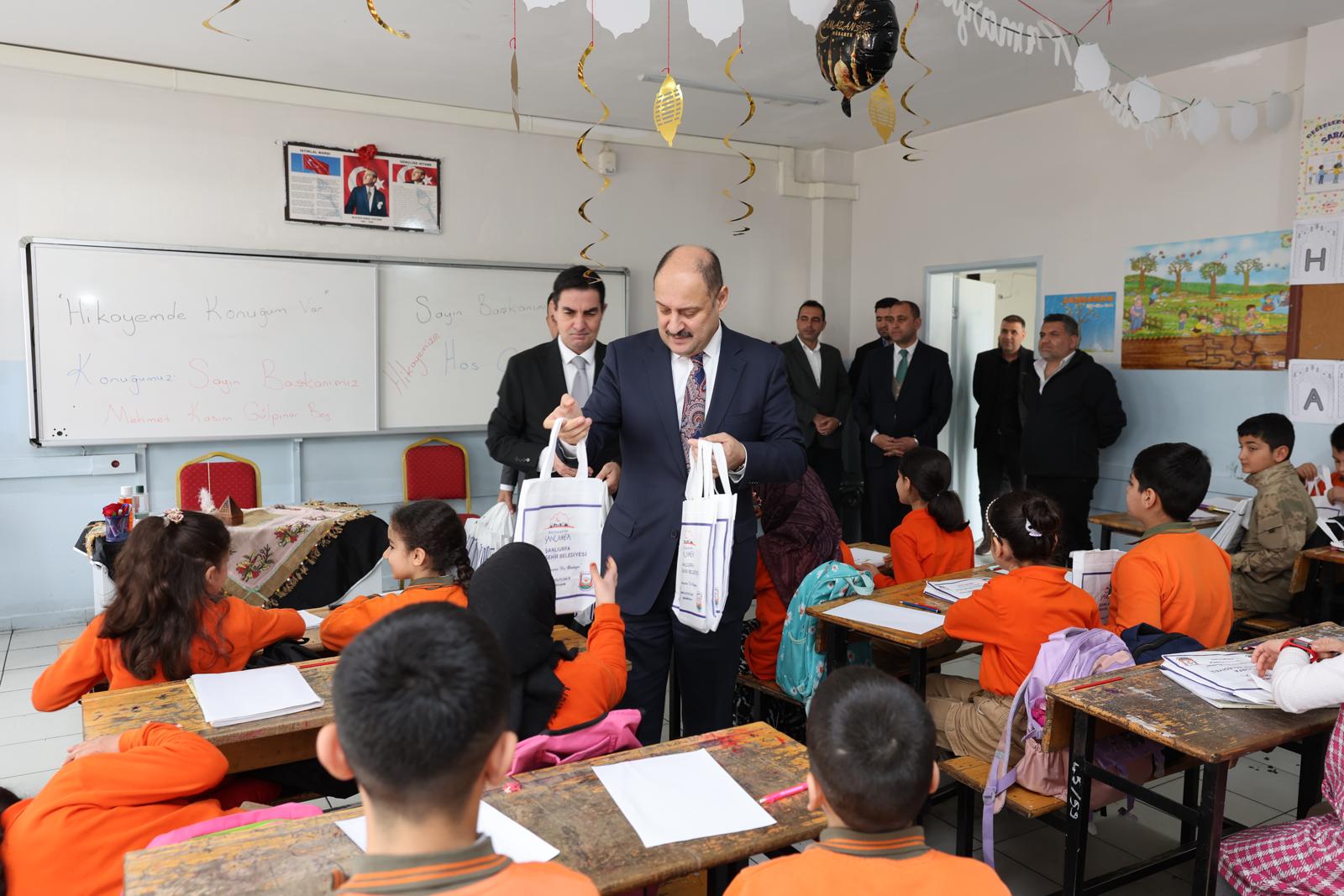 Şanlıurfa Büyükşehir Belediye Başkanı Mehmet Kasım Gülpınar, Dr. Cavit Özyeğin İlkokulu’nda öğrenciler tarafından büyük bir ilgiyle karşılandı. 4-I sınıfında “Hikayemde Konuğum Var” etkinliğine katılan Başkan Gülpınar, kendisini davet eden öğretmen ve öğrencilere teşekkür ederek konuşmasına başladı. Etkinlik kapsamında öğrencilerle samimi bir sohbet gerçekleştiren Gülpınar, Şanlıurfa’da yürütülen belediye çalışmaları hakkında öğrencilere bilgiler verdi. Ayrıca belediye başkanlığı görevinde yaptıkları hizmetlerden söz ederek çocukların merak ettiği konulara da değindi.