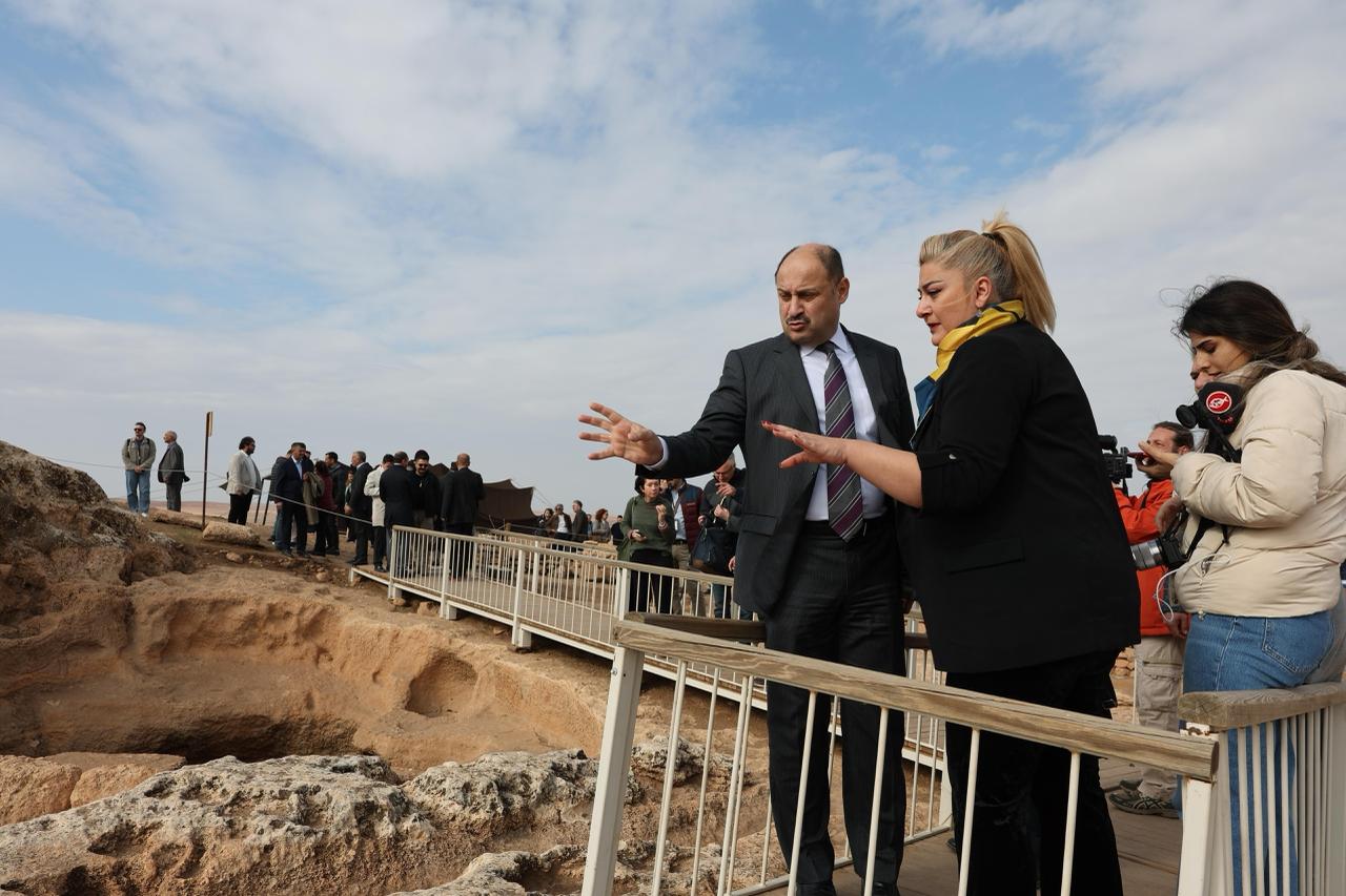 ardından Bakan Ersoy, Başkan Gülpınar ve beraberindekiler, Karahantepe’de
