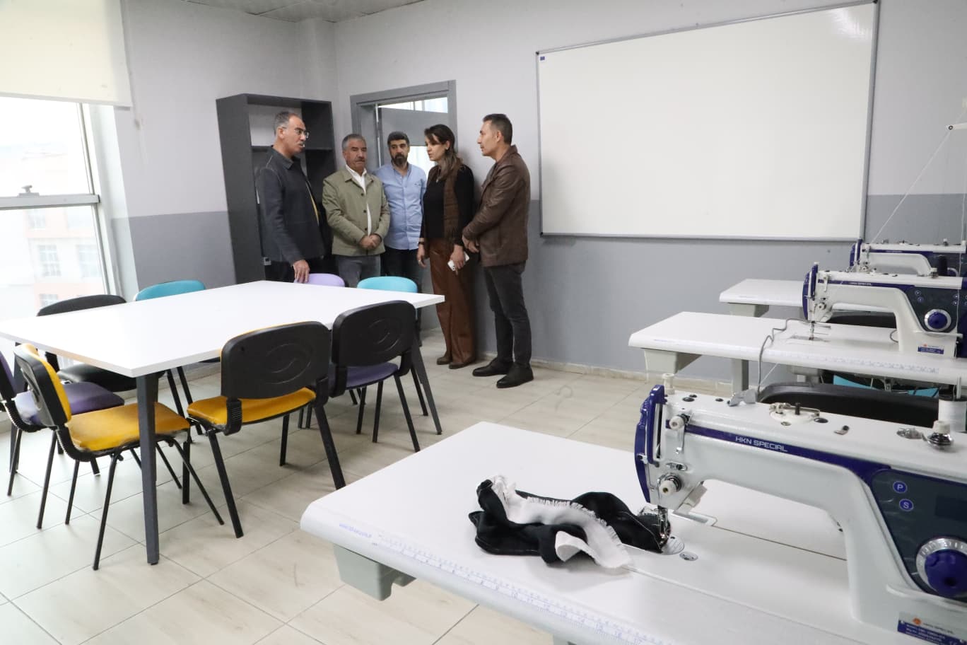 Şanlıurfa Sosyal Girişimcilik Merkezi’nde açılan atölyelerde aşçılık, biçki-dikiş, örgü, okuma yazma sınıfı, bilgisayar eğitimi, fitness salonu ve kreş gibi bölümleri ziyaret eden Başkan Kuş, buradaki kurslara katılarak meslek öğrenip, el becerilerini geliştirmeye başlayan kadınlarla sohbet etti.