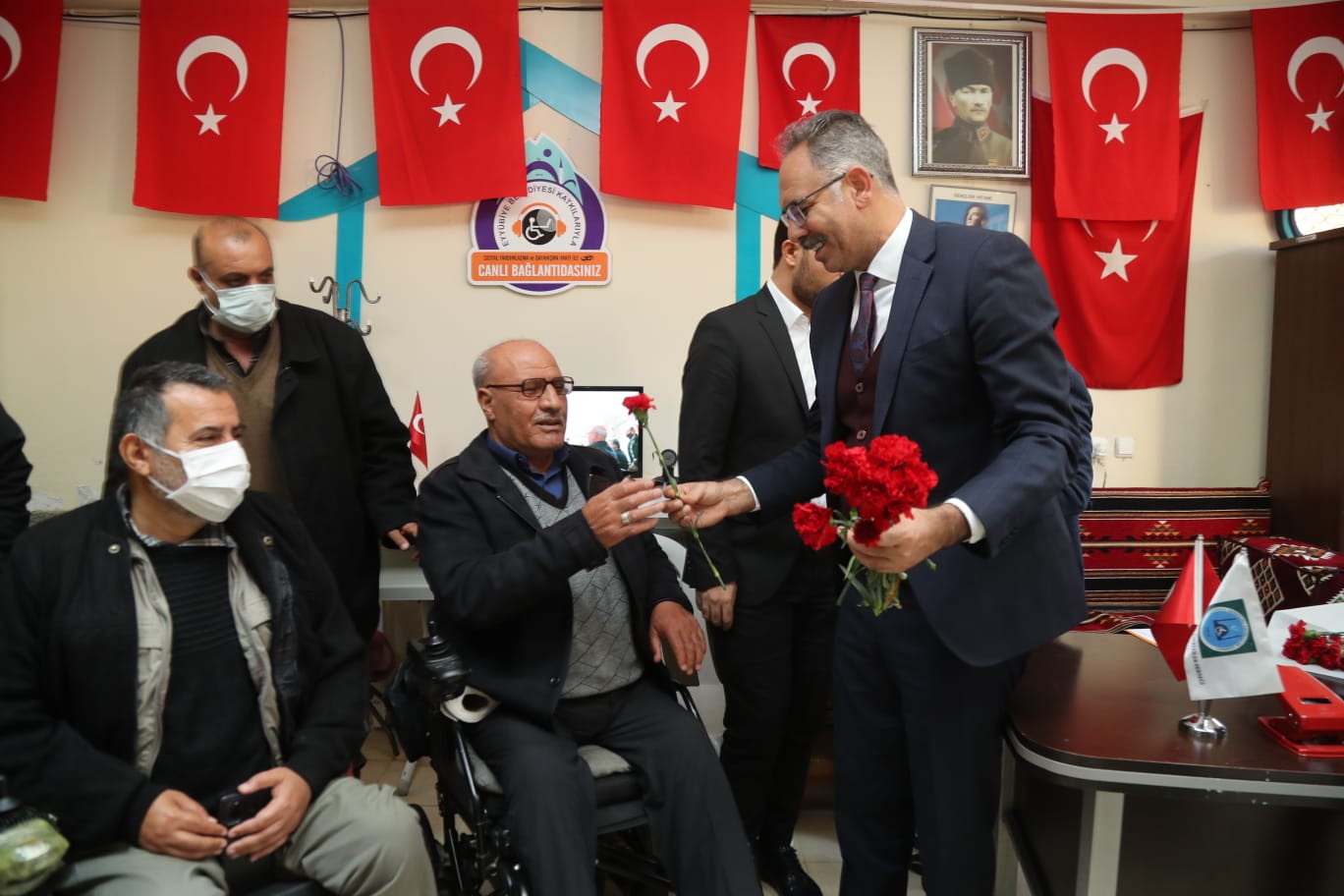 AK Parti Eyyübiye İlçe Başkanı Mehmet Moğal konuşmasında şunları söyledi,” 3 Aralık Engelliler Gününü kutlamak amacı ile Engelli kardeşlerimizi ziyaret ettik. Başkanımız sağ olsun engelli kardeşlerimizin sorunlarını dinledi ve çözüme kavuşturacak inşallah. Ben buradan bütün engelliler gününü kutluyorum. Cumhurbaşkanımızın engellilere vermiş oldukları önemi biliyoruz. Buraya Cumhurbaşkanımızın selamını getirdik. Liderimiz Cumhurbaşkanımız Recep Tayip Erdoğan’ın tüm engelli kardeşlerimize selamını ilettik. “