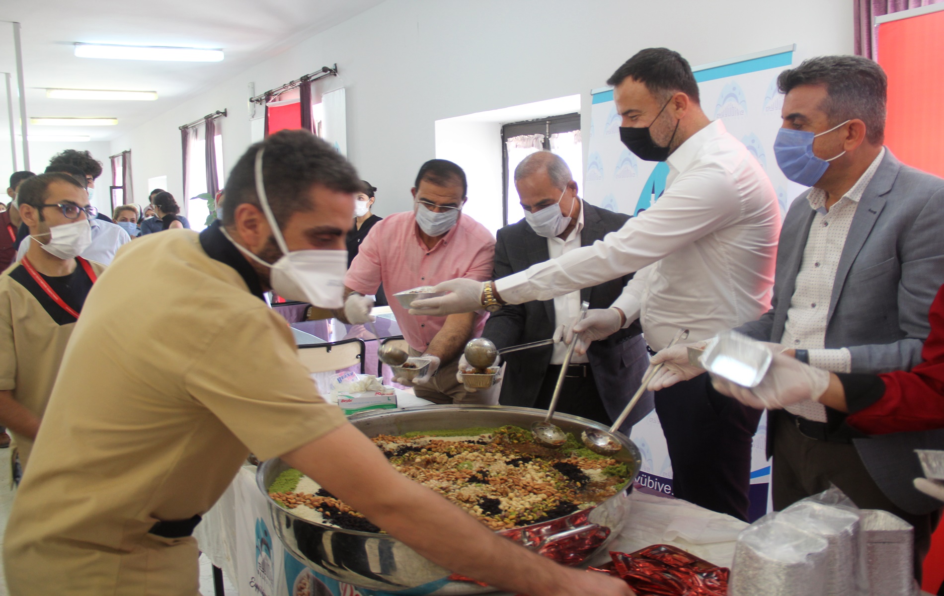 Eyyübiye Belediye Başkanı Mehmet Kuş, hem Halk Sağlığı Haftası hem de Muharrem ayı dolayısıyla sağlık çalışanlarına aşure ikramında bulundu. Başkan Kuş,” Sağlık çalışanlarımızın her zaman yanındayız.” Dedi.