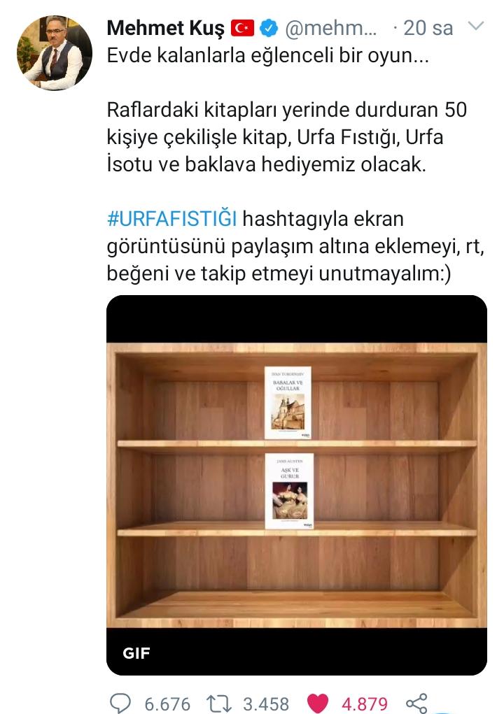 Eyyübiye Belediye Başkanı Mehmet Kuş, sosyal medya hesabından kısıtlama ile evde oturanlara bir çekiliş düzenleyerek #URFAFISTIĞI ile paylaşım yapanlara hediye vereceğini paylaşınca, Urfa fıstığı gündeme oturdu.