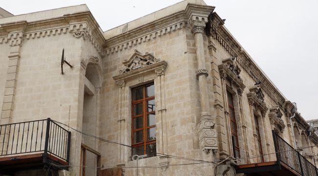 arındırılırken tarihi konakta teknik ekipler tarafından Şanlıurfa mimarisine