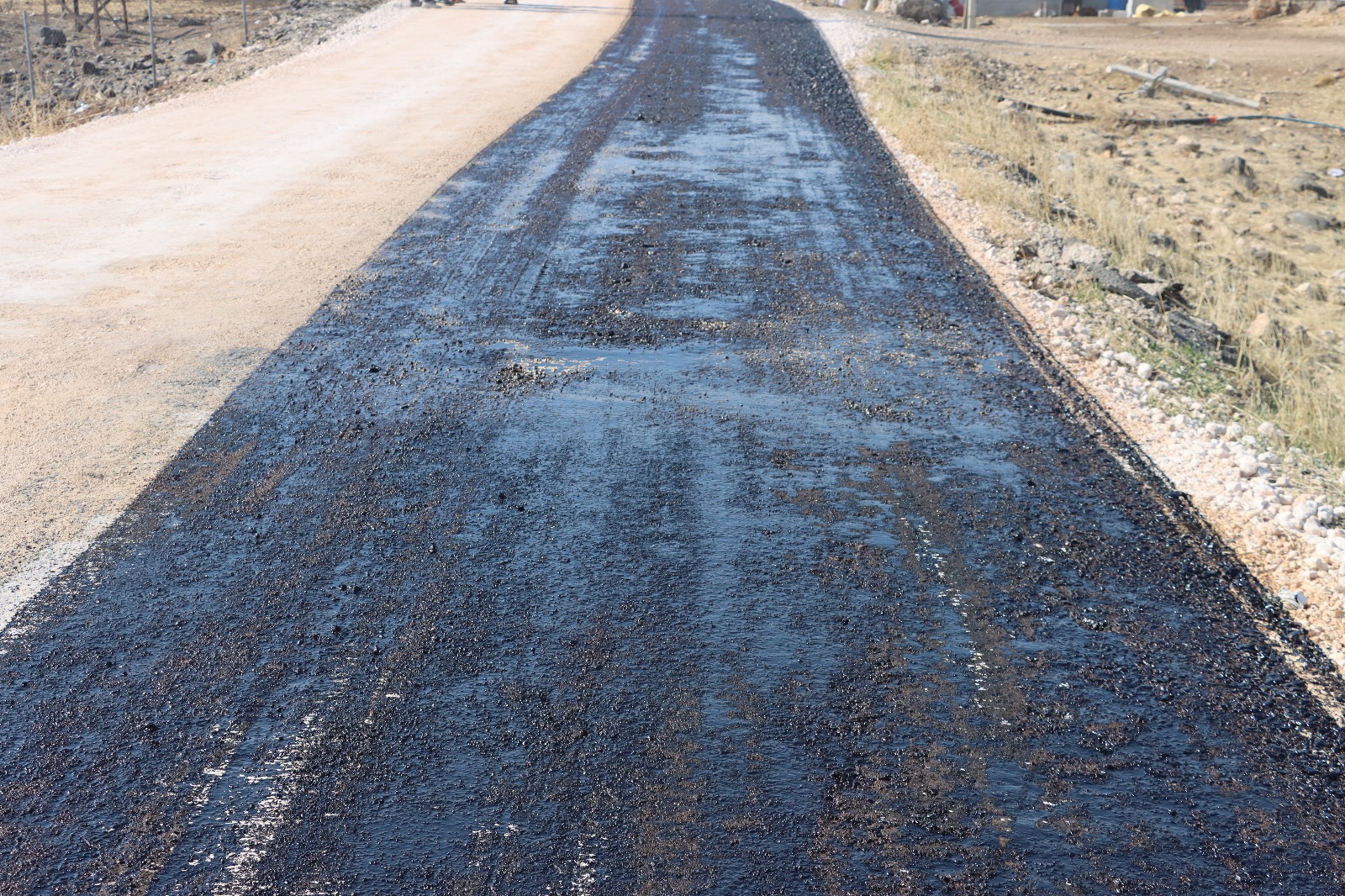 Mahalleleri arasındaki yolda sathi asfalt öncesi sıfırlama ve astar çalışmaları