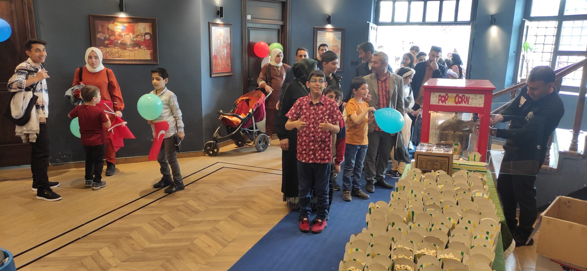 Sinema kapısında palyaço ekibiyle karşılaşan çocukların sevinçleri gözlerinden okunurken 23 Nisan Ulusal Egemenlik ve Çocuk Bayramı dolayısıyla çocuklara yüz boyama etkinliği de yapıldı. Çocuklara ve ailelerine Büyükşehir Belediyesi tarafından patlamış mısır, gazoz ve çeşitli ikramlarda bulunuldu.