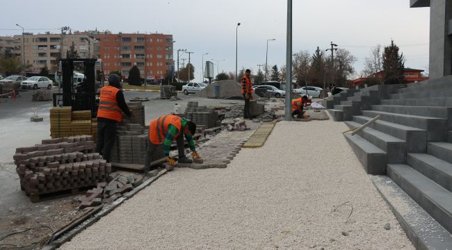 metrekarelik alanda kilitli parke ve kaldırım taşı döşeniyor.