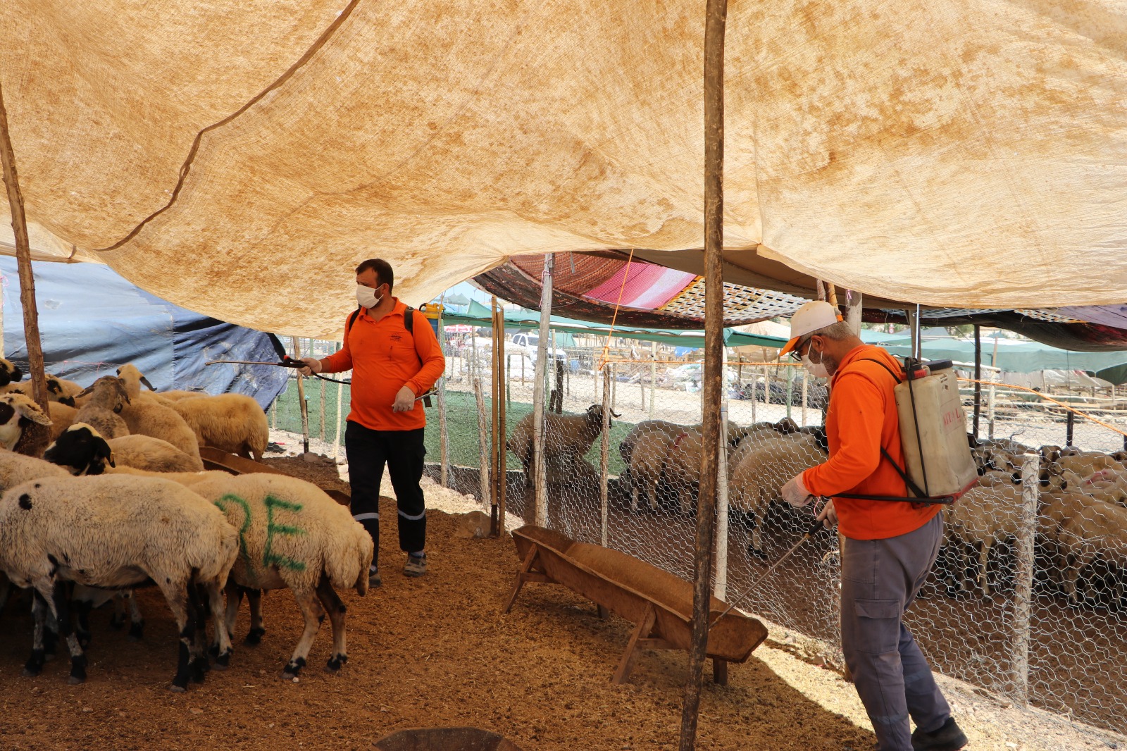 Şanlıurfa’da merkez ilçe belediyeleri tarafından kurulan kurbanlık satış yerlerinde sağlık açısından herhangi bir olumsuzluk yaşanmaması adına ekipler tarafından program dâhilinde ilaçlama çalışmalarını gerçekleştiriliyor.