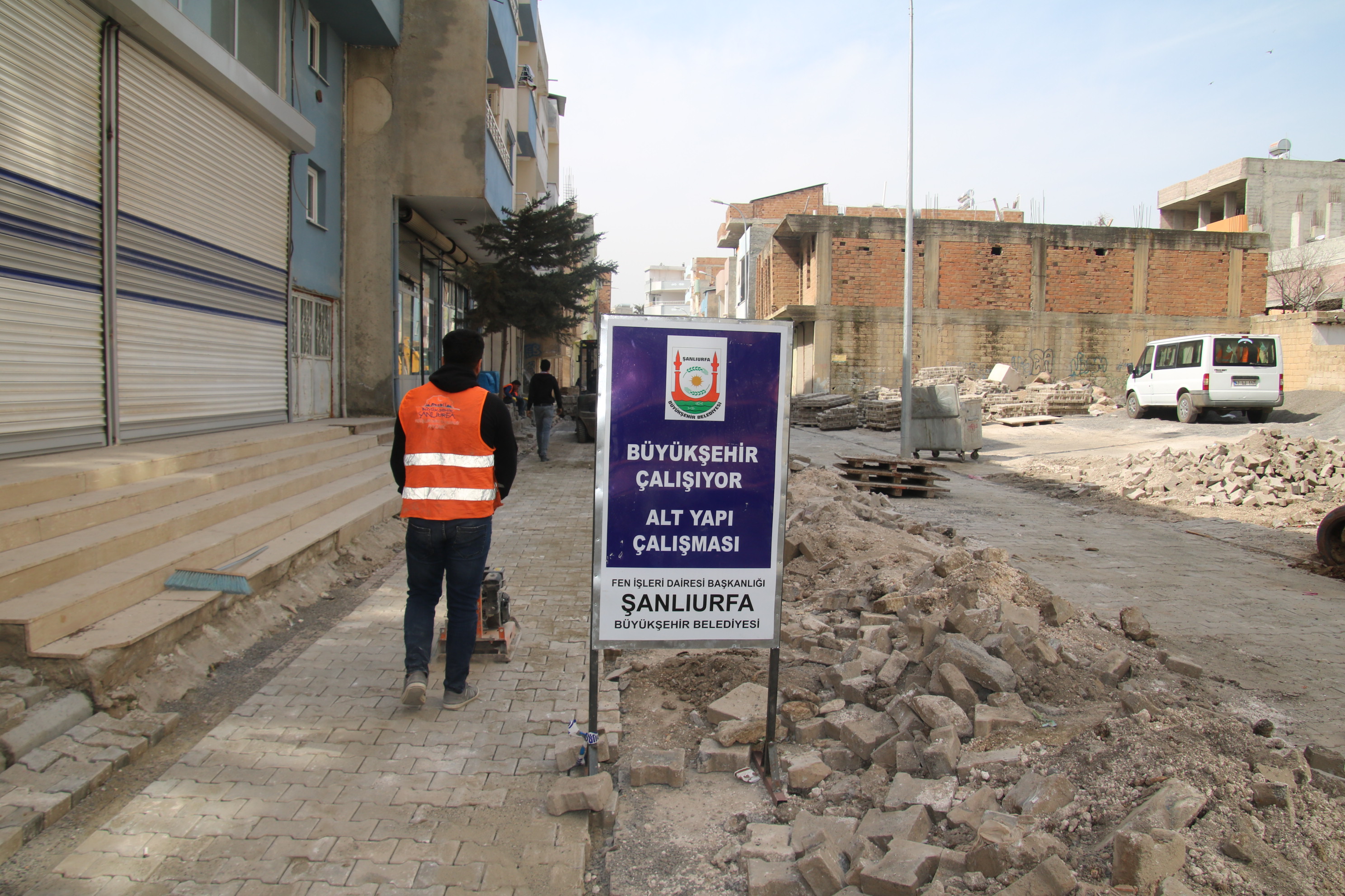 Enerji nakil hatlarını yer altına alındığı Viranşehir ilçesinde Yeni, Cumhuriyet ve Gölbaşı Mahallelerinde kazı çalışmaları nedeniyle bozulan kilit parkeli yollar Büyükşehir AYKOME ekiplerince tamir edilerek vatandaşların hizmetine sunuluyor.