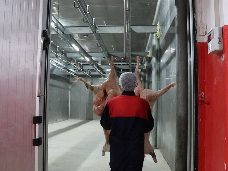 ekipmanlarla kesim yapmak için inşa ettiği yeni mezbahanede aynı anda daha