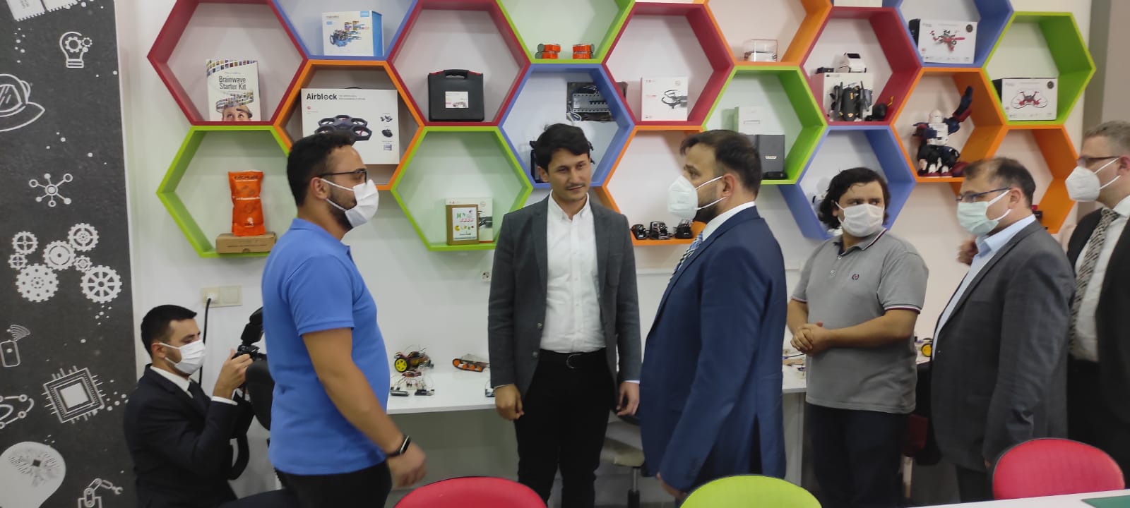 Cumhurbaşkanlığı Dijital Dönüşüm Ofisi Başkanı Dr. Ali Taha Koç gençlerin bireysel çalışma atölyelerinde ve grup çalışma atölyelerinde bilim, teknoloji, mühendislik ve matematik ile birçok eğitim yenilebilir ve sürdürülebilir projeleri yerinde inceleyerek bilgi aldı.