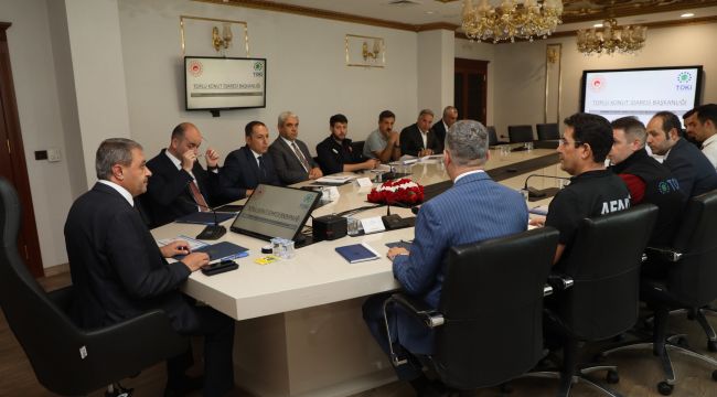 Vali Hasan Şıldak’ın başkanlık ettiği toplantıya Vali Yardımcıları Erinç Demir ve Ahmet Fatih Sungur, TOKİ Şube Müdürü Kayhan Aksoy, Şuski Genel Müdürü Sait Güllüoğlu, Karayolları Bölge Müdürü Savaş Bayındır, AFAD Müdürü Ufuk ŞelalErgeldi ve TOKİ Şantiye Sorumlusu Ali Güneş ve ilgili kurum temsilcileri katıldı.