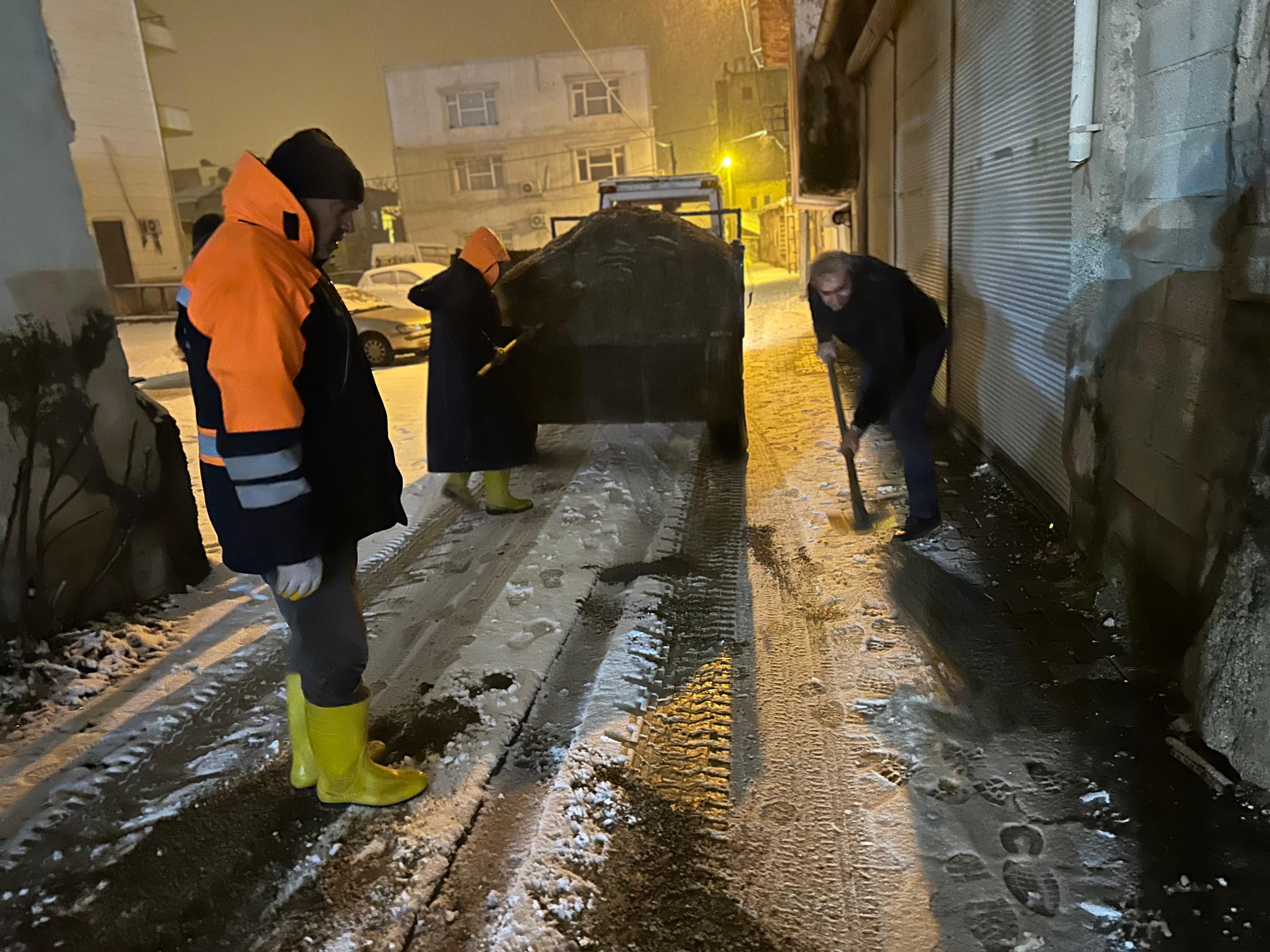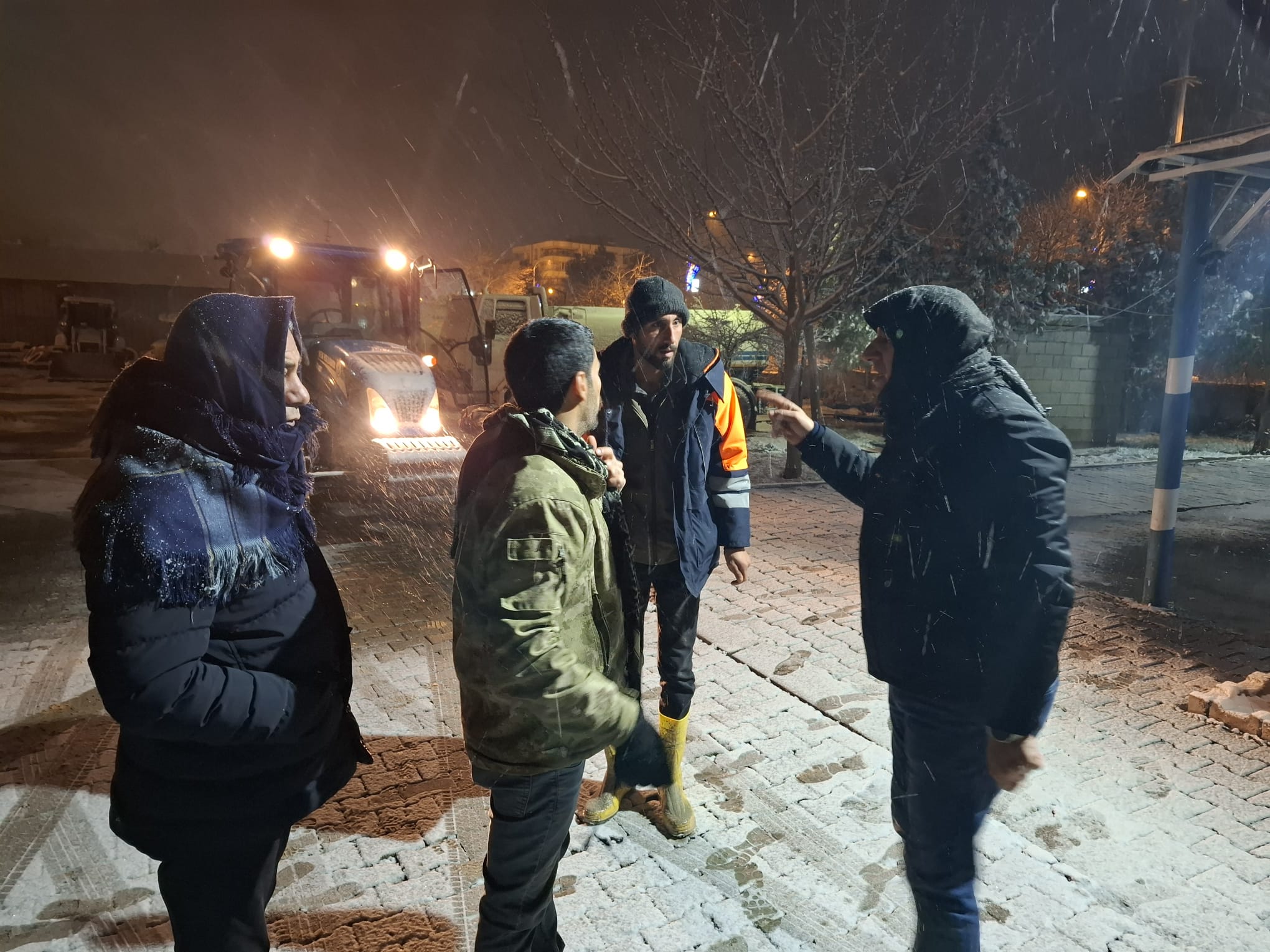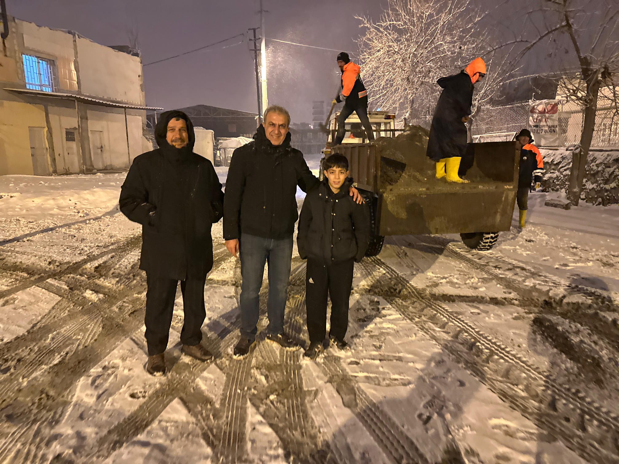 Karla mücadele çalışmalarına bizzat katılan Hilvan Belediyesi Eşbaşkanı Serhan Paydaş ekiplerle birlikte sokak sokak sahada görev alarak tuzlama ve kar temizleme faaliyetlerine eşlik ediyor. Kentin her noktasında hizmette eşitlik anlayışıyla yürütülen çalışmalar gece gündüz demeden sürdürülüyor.