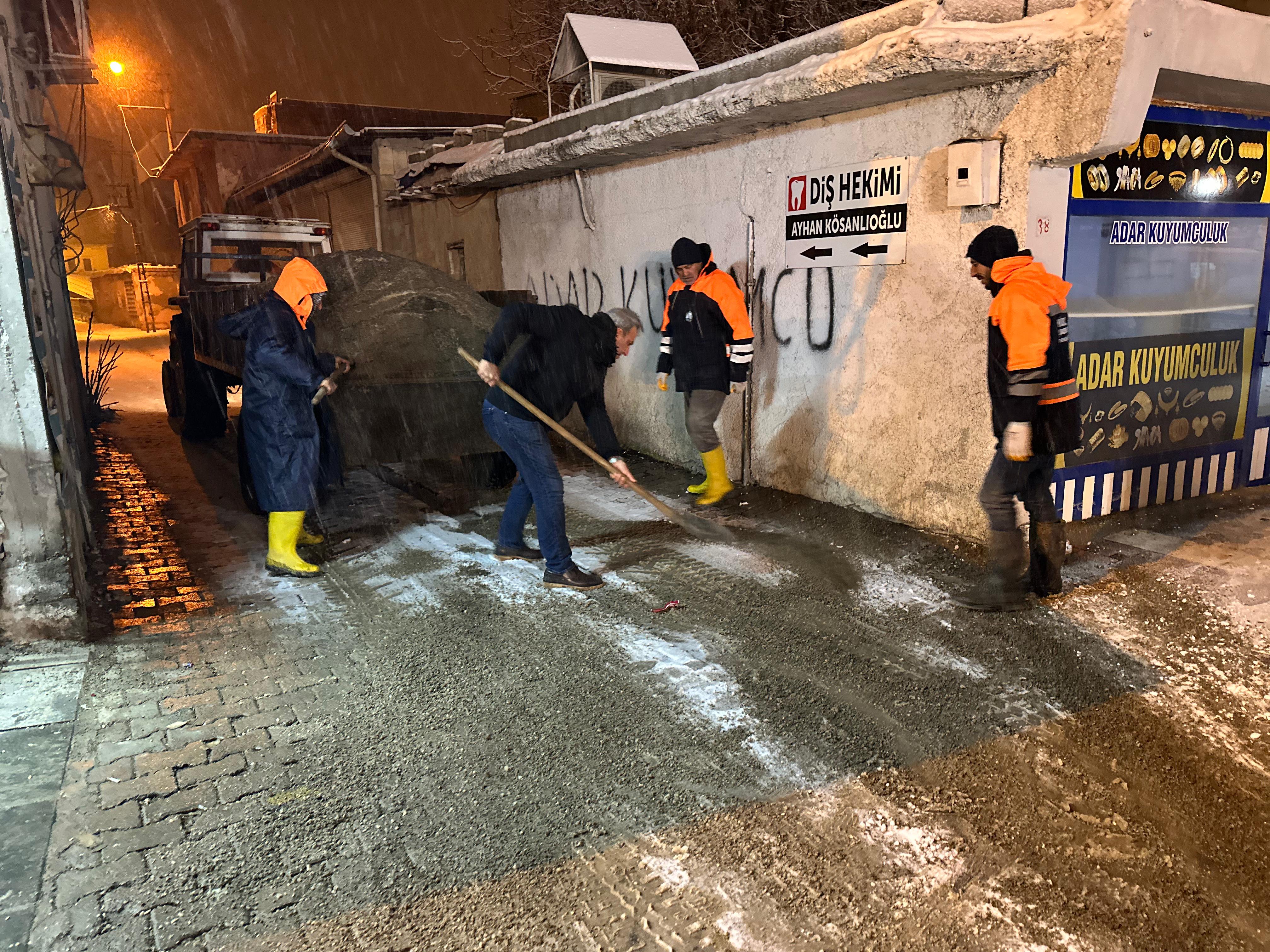 Hilvan’da etkisini sürdüren kar yağışıyla birlikte ulaşımın aksamaması ve halkın güvenliğinin sağlanması amacıyla tuzlama ve kar temizleme çalışmaları aralıksız devam ediyor.