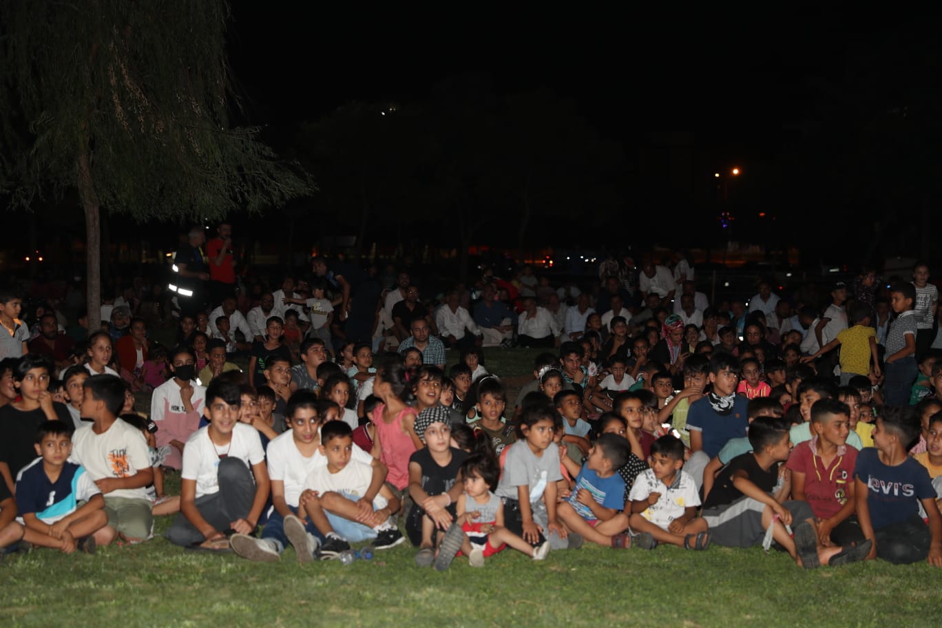 Şanlıurfa’nın en büyük ilçesi Eyyübiye’de her akşam bir mahallede düzenlenen açık hava sinema günleri etkinliğine katılan aileler ve çocuklar, böyle bir etkinliği düzenleyen Başkan Kuş ve ekibine teşekkür ediyor.