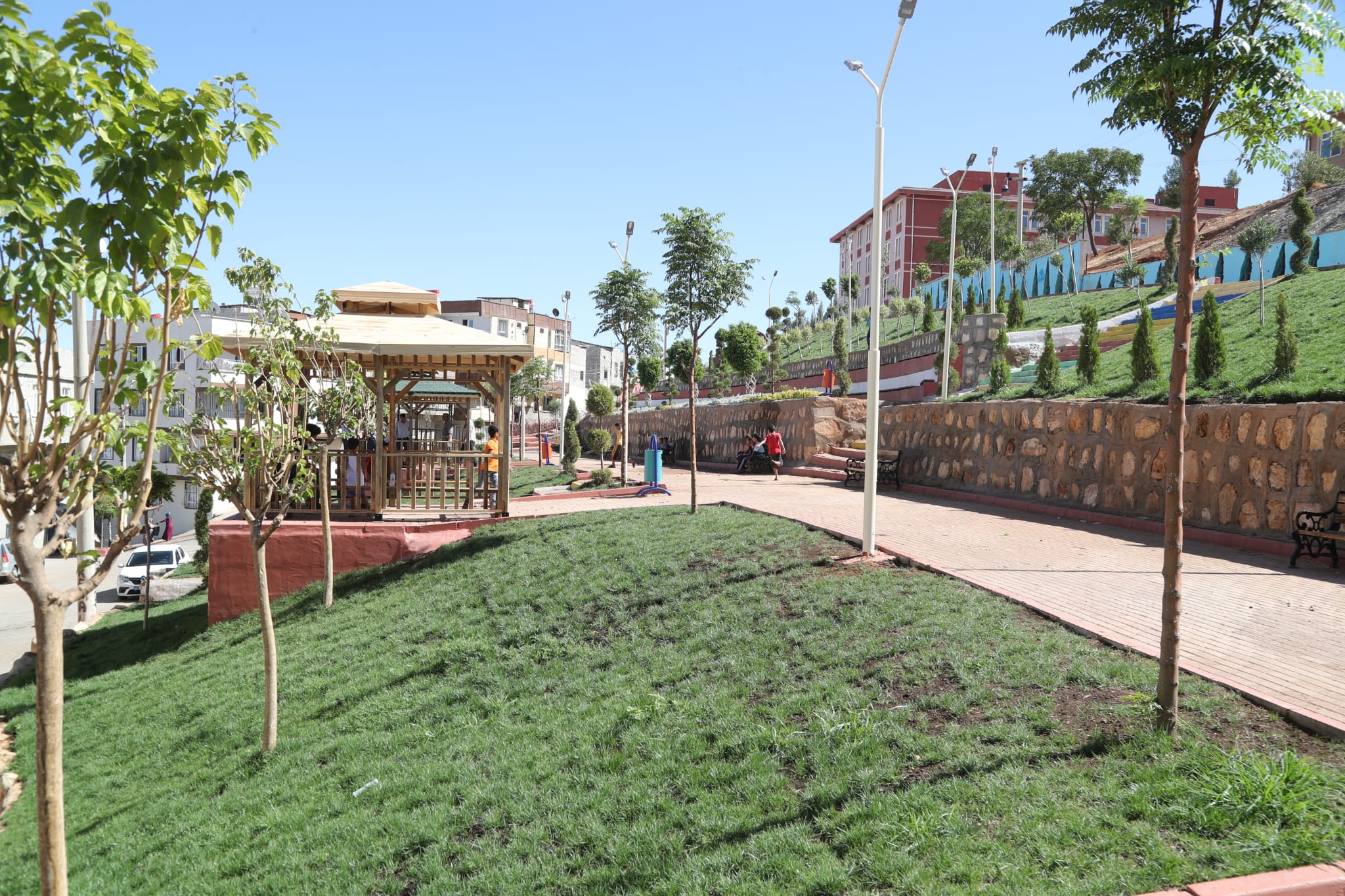 Eyyübiye Belediye Başkanı Mehmet Kuş, yapım çalışmaları tamamlanma aşamasına ve gelen 3500 metre karelik alanı kapsayan içerisinde şelale park ve kitap otağı bulunan alanda incelemelerde bulundu.