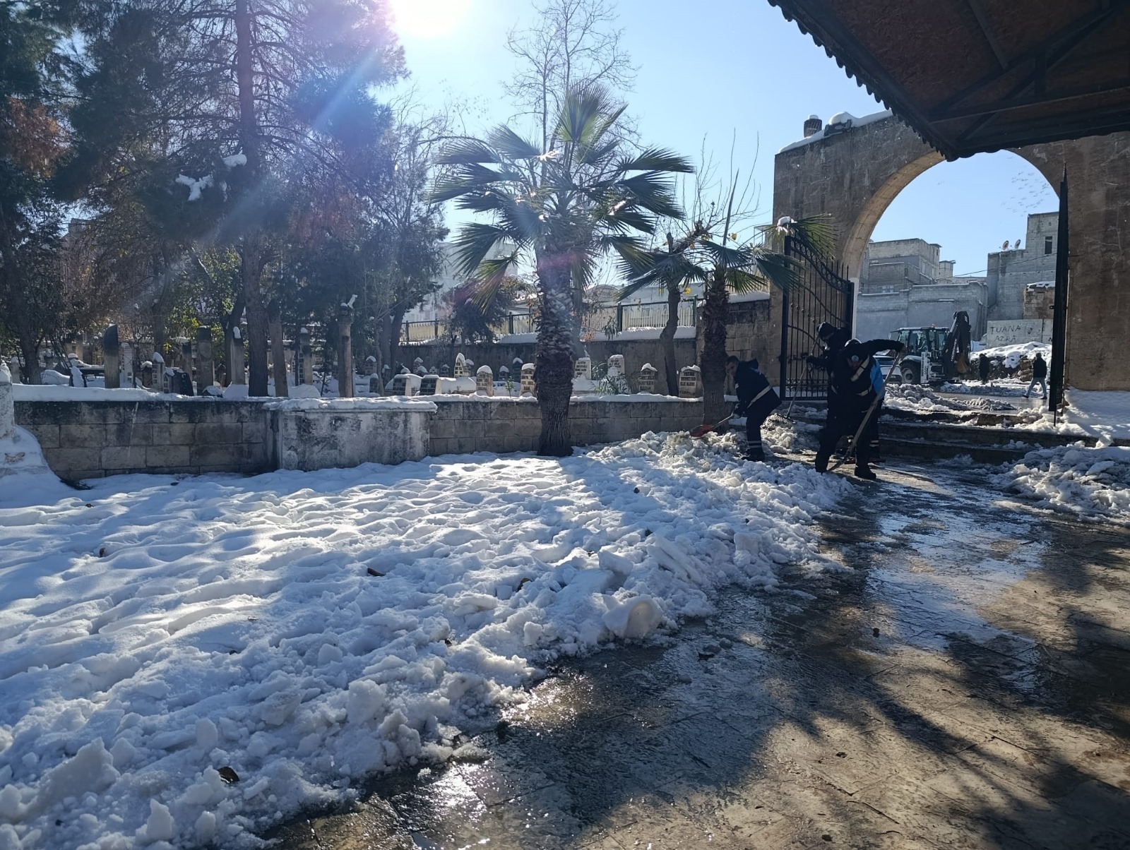 gelebilmesi için harekete geçen Eyyübiye Belediyesi ekipleri ise okulların