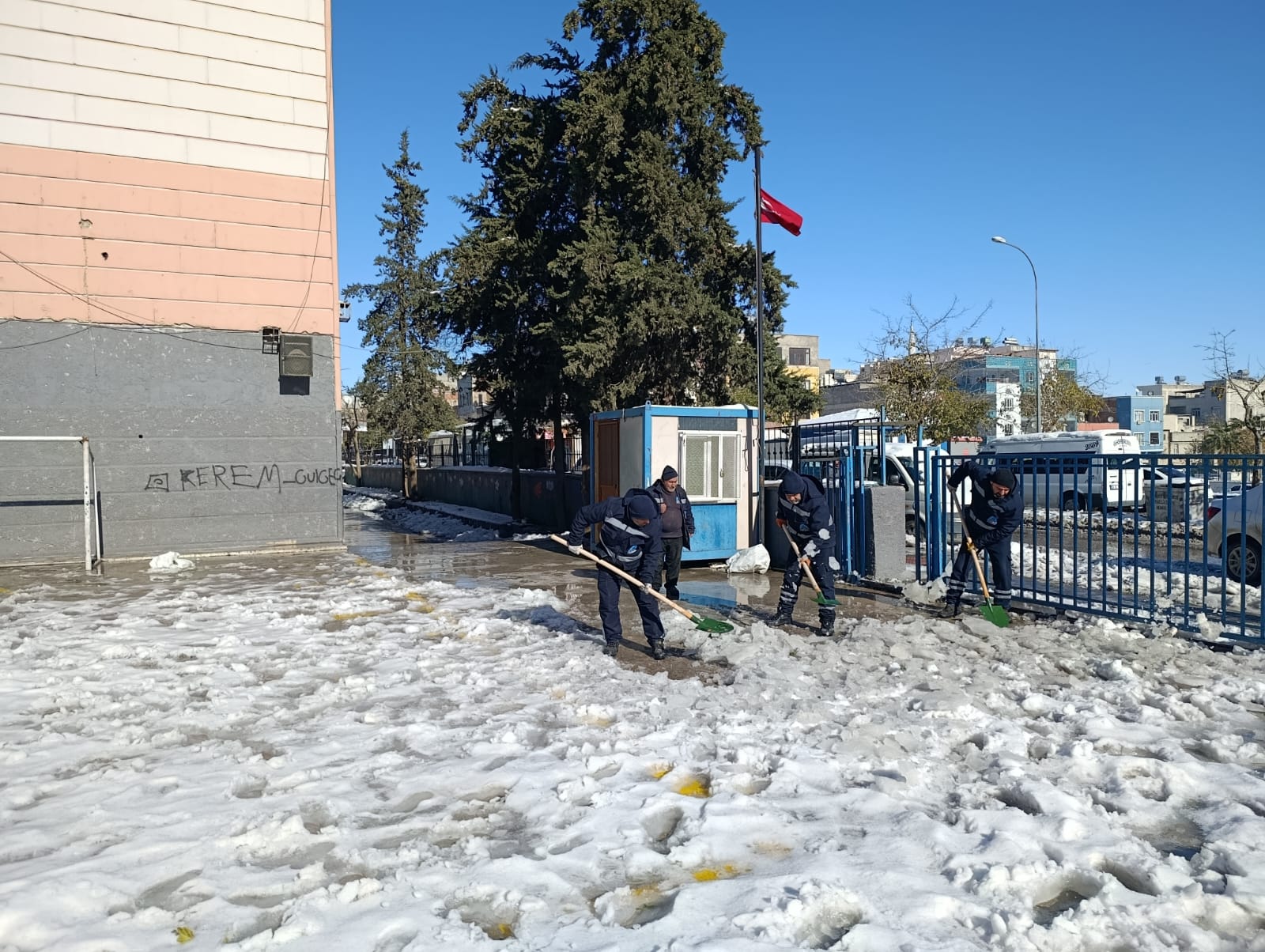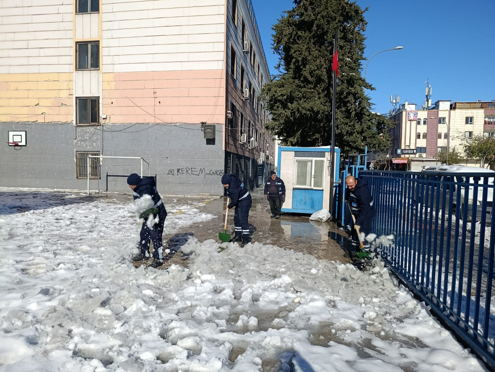 de kar ve buz temizliği gerçekleştiriyor.
