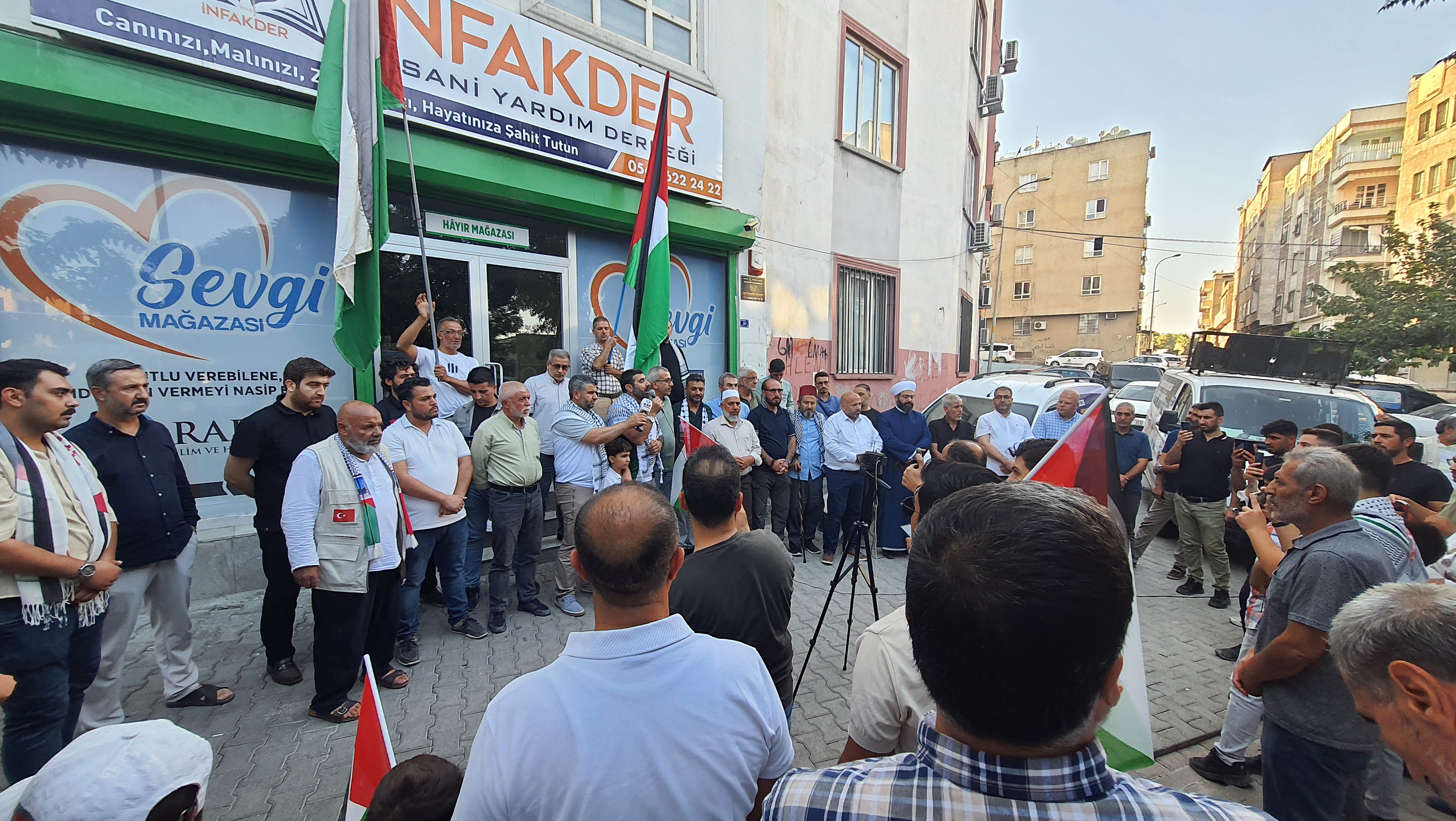Şanlıurfa İnfak Derneği binası önünde uğurlama programı gerçekleştirildi. İlk olarak İnfak Der başkanı Mehmet Ali PARLAK konuşma yaptı. Ardından gemiye binecek olan diğer kişiler konuşmalarını yaptılar. Konuşma esnasında duygusal anlar yaşandı. Herkesin Gazze için elinden geleni yapması gerektiği vurgulandı. Konuşma arasında tekbirler getirildi. Konuşmalar bittikten sonra uğurlamaya gelen insanlar vedalaşmak için sıraya girdiler. Gemiye binecek olan kişilere sarılıp ağlayanlar oldu. Gazze için atılan her adım yanan yüreklere bir nebze de olsa ferahlık veriyordu. Uğurlama programının sonunda bir kurban da kesildi. Son olarak araç konvoyu oluşturularak Gazze yolcuları havaalanına kadar götürüldü. Şanlıurfa'dan giden ekip Tunus'tan gemiye binecek. Ayrıca Şanlıurfa İnfak Der ekibi bir geminin masrafını kendilerinin karşıladıklarını ifade ettiler.
