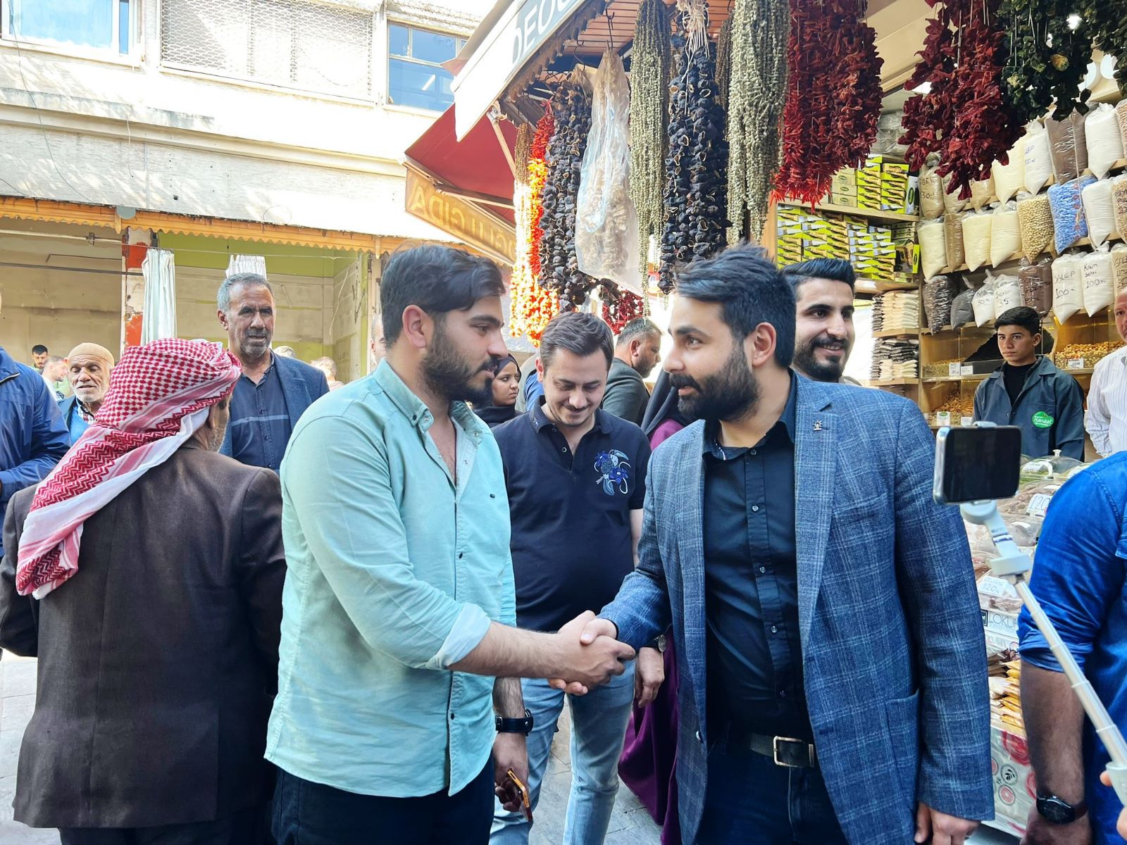 AK Parti Şanlıurfa Gençlik Kolları üyeleriyle birlikte seçim çalışmalarını sürdüren Milletvekili Adayı Emre Karaçizmeli, vatandaş ve esnaf tarafından yoğun ilgiyle karşılandı.