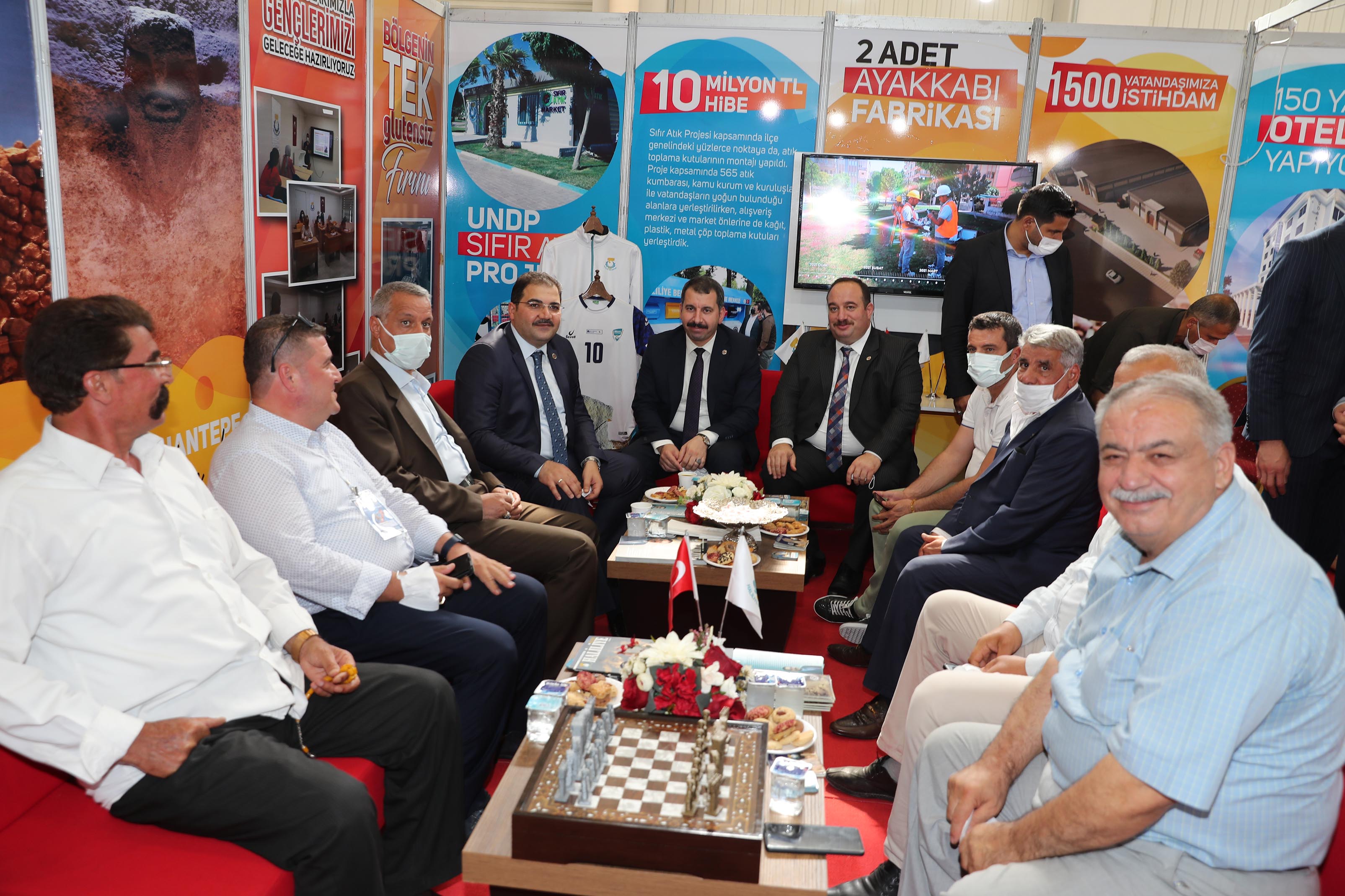 TBMM Plan ve Bütçe Komisyon Başkanı AK Parti Bingöl Milletvekili Cevdet Yılmaz ile TOBB Başkanı M. Rifat Hisarcıklıoğlu Haliliye Belediyesi’nin standını ziyaret ederek, Başkan Canpolat’tan hizmetler ve Geleneksel El Sanatları Merkezi çalışmalarıyla ilgili bilgi aldılar. Başkan Canpolat, Cevdet Yılmaz ve M. Rifat Hisarcıklıoğlu’na el sanatları ürünleri hediye etti.