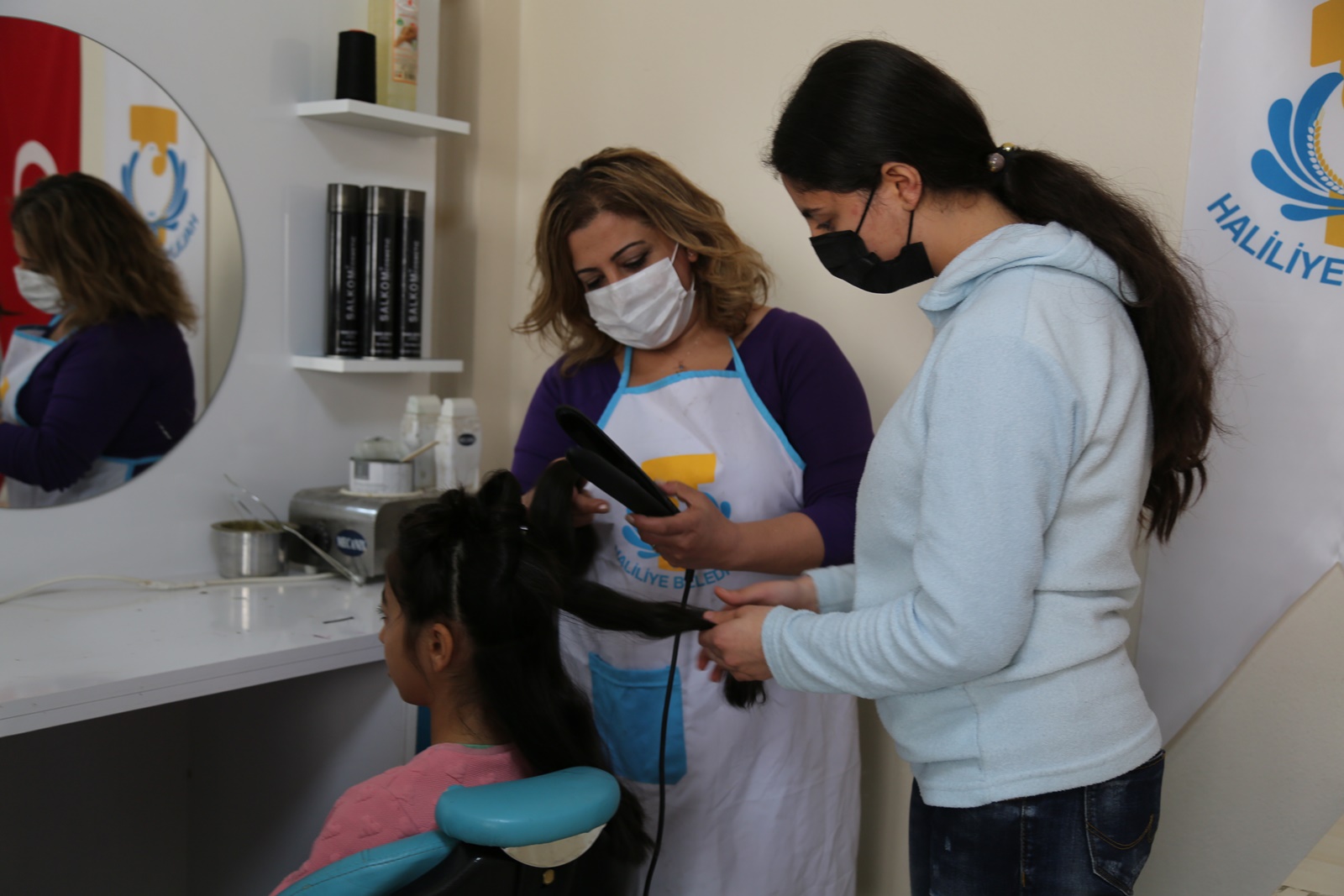 Haliliye Belediyesi, kadınların meslek öğrenmelerini sağlamak amacıyla yürüttüğü çalışmalar kapsamında Ahmet Yesevi Millet Evinde açılan kurslarda, kadınlar meslek öğrenirken, çocukları da kreşte vakit geçiriyor.