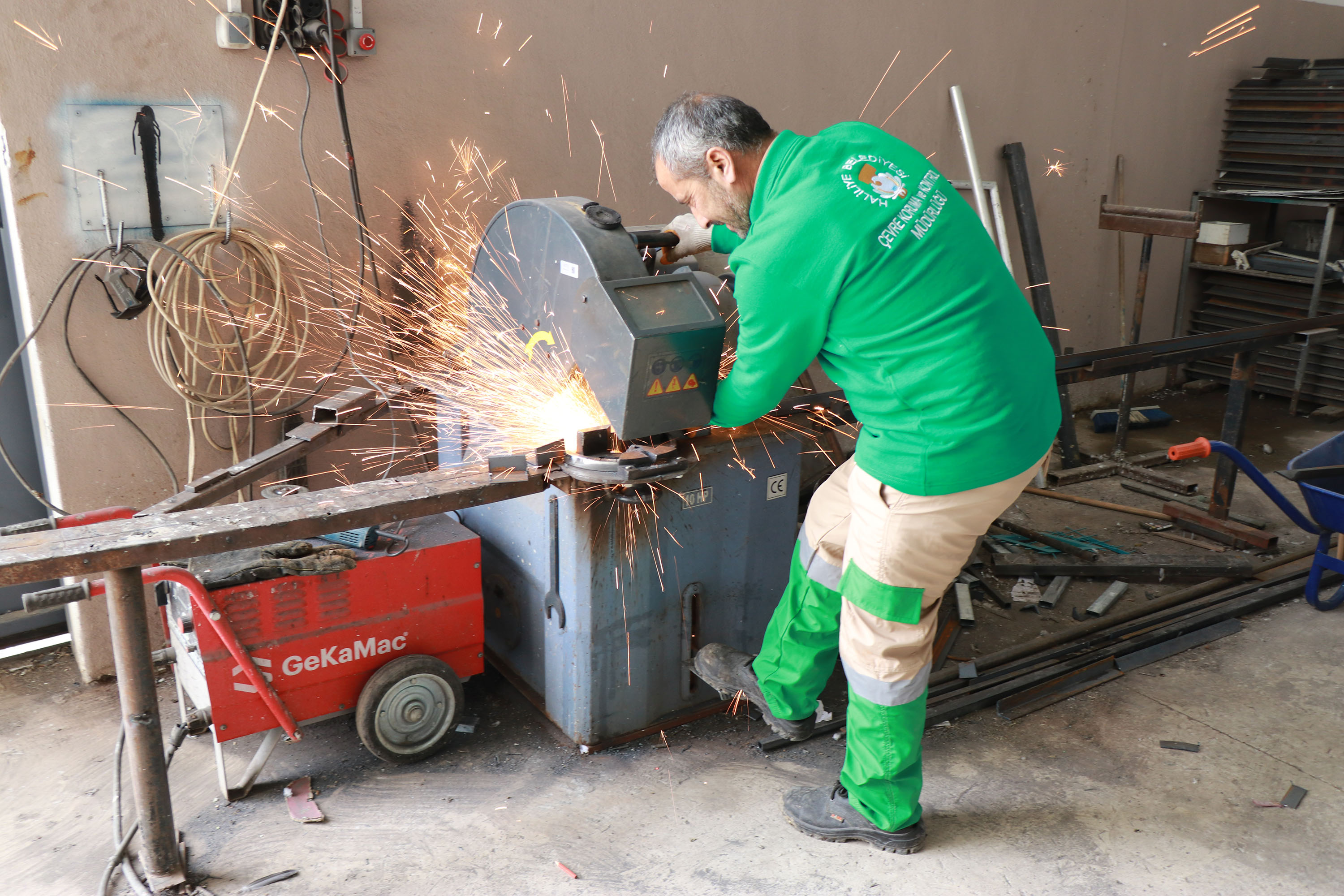 Öte yandan, belediye bünyesindeki Metal-İş, Boyama ve Ahşap Atölyelerinde görev yapan ekipler de park ve yeşil alanlarda kullanılan donatı elemanlarını kendi imkanlarıyla üretiyor. Kaynak, boyama ve montaj işlemleri belediye personeli tarafından tamamlanarak kısa sürede vatandaşların hizmetine sunuluyor. Bu çalışmayla hem zaman hem maliyet açısından önemli tasarruf elde ediliyor.