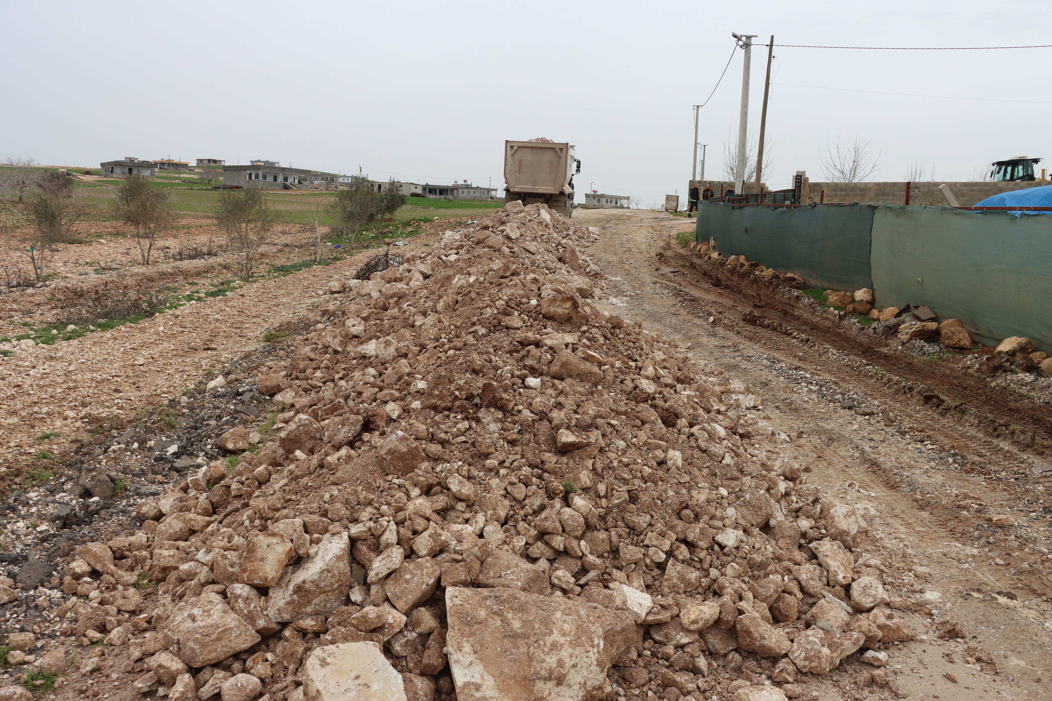 dolgu malzemesiyle altyapı çalışmaları gerçekleştiriliyor.