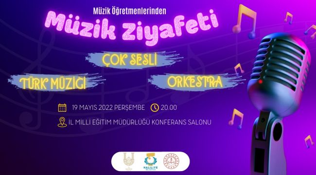Haliliye Belediyesi, Şanlıurfa Valiliği ve İl Milli Eğitim Müdürlüğü ortaklığı ile düzenlenen etkinlik ile “Müzik Öğretmenlerinden Müzik Ziyafeti” konseri verilecek. Müzik öğretmenlerinin sahne alacağı konserde orkestra eşliğinde Türk Müziğinden parçalar seslendirilecek. Konser ‘Çok Sesli Koro, Türk Müziği Korosu ve Orkestra’ ile 3 bölümden oluşacak.
