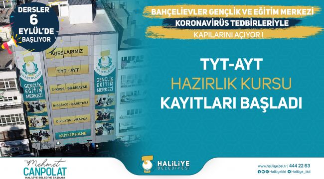 Haliliye Belediyesi, 2021-2022 eğitim ve öğretim yılında Yükseköğretim Kurumları Sınavına (YKS) girecek olan öğrencilere yönelik ücretsiz TYT ve AYT hazırlık kursu kayıtlarının başladığını duyurdu.
