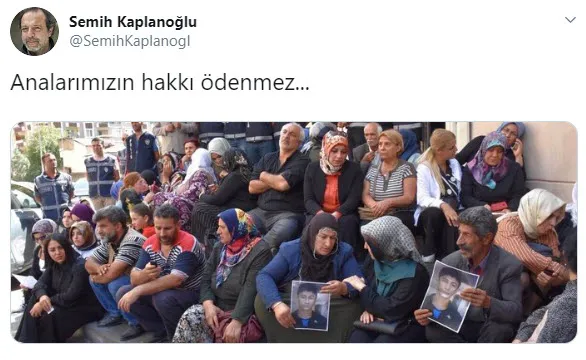 Şair Serdar Tuncer de mesajında, "Annelerle Beraberiz Ya Sen" etiketiyle oturma eylemi yapan annelerin fotoğrafını paylaştı.