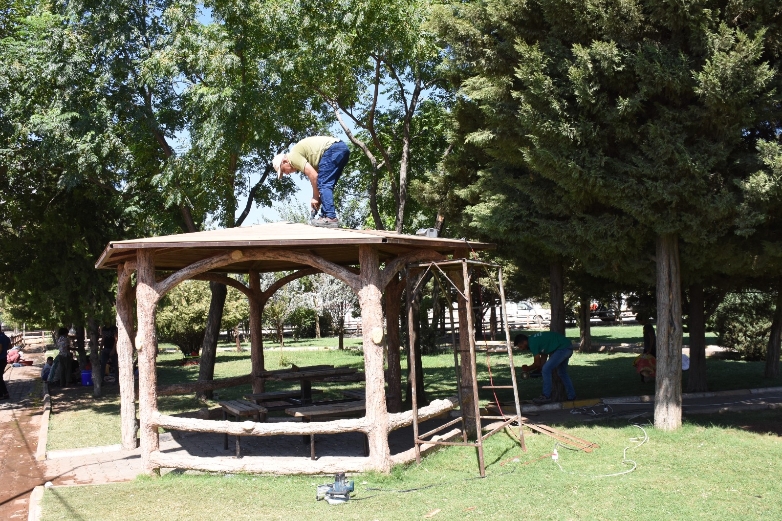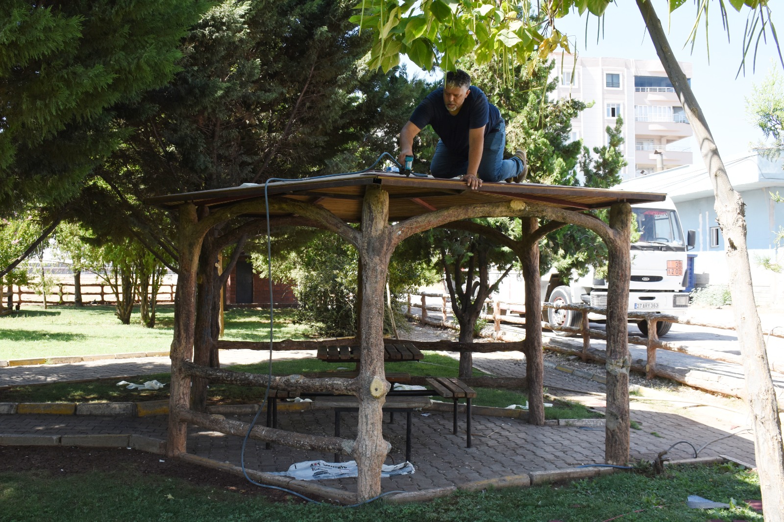 Sadece oyun gruplarıyla sınırlı kalmayan çalışmalar kapsamında parklarda yer alan kamelyalarda titizlikle bakım ve onarımdan geçiriliyor. Bu çalışmalarla daha konforlu, estetik ve keyifli yaşam alanları sunulmaya devam ediliyor.