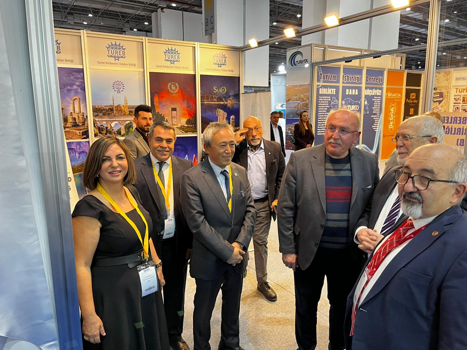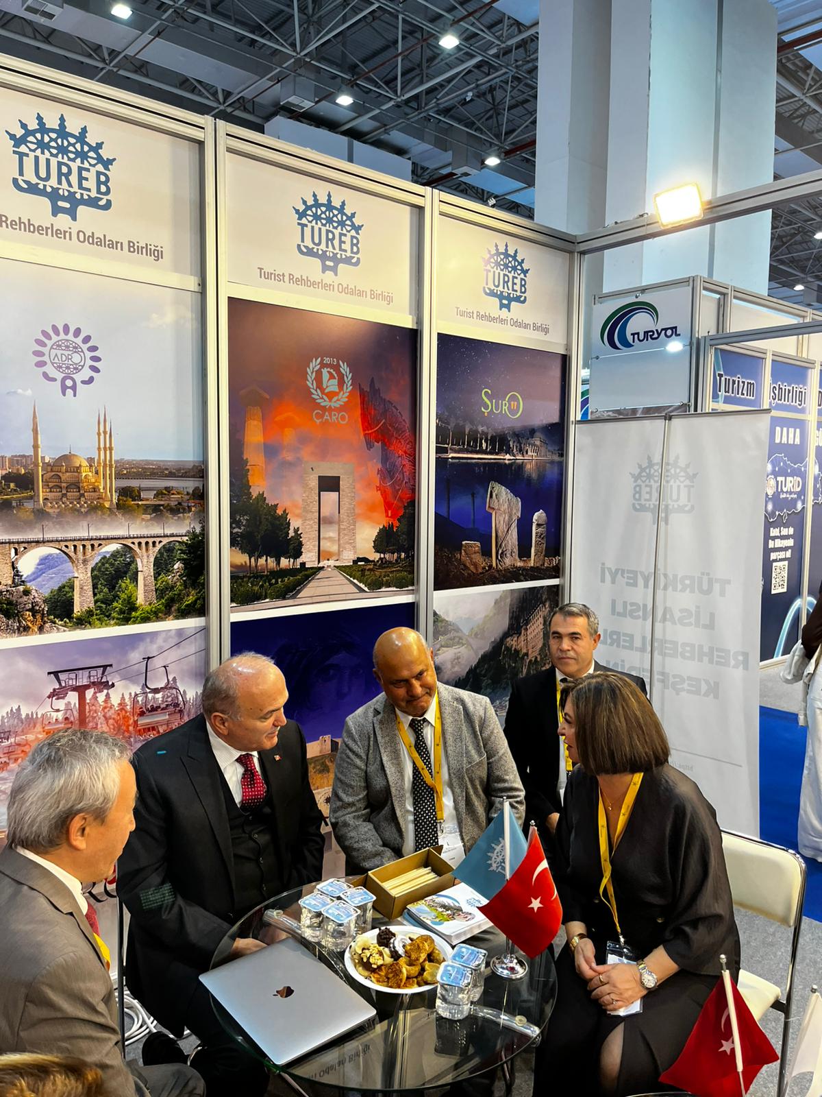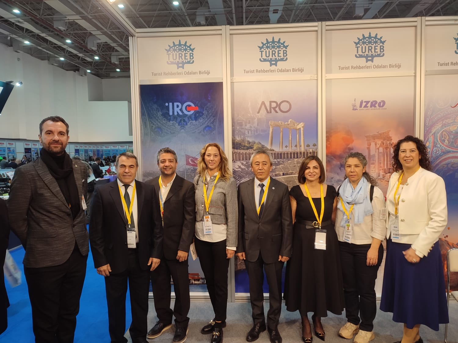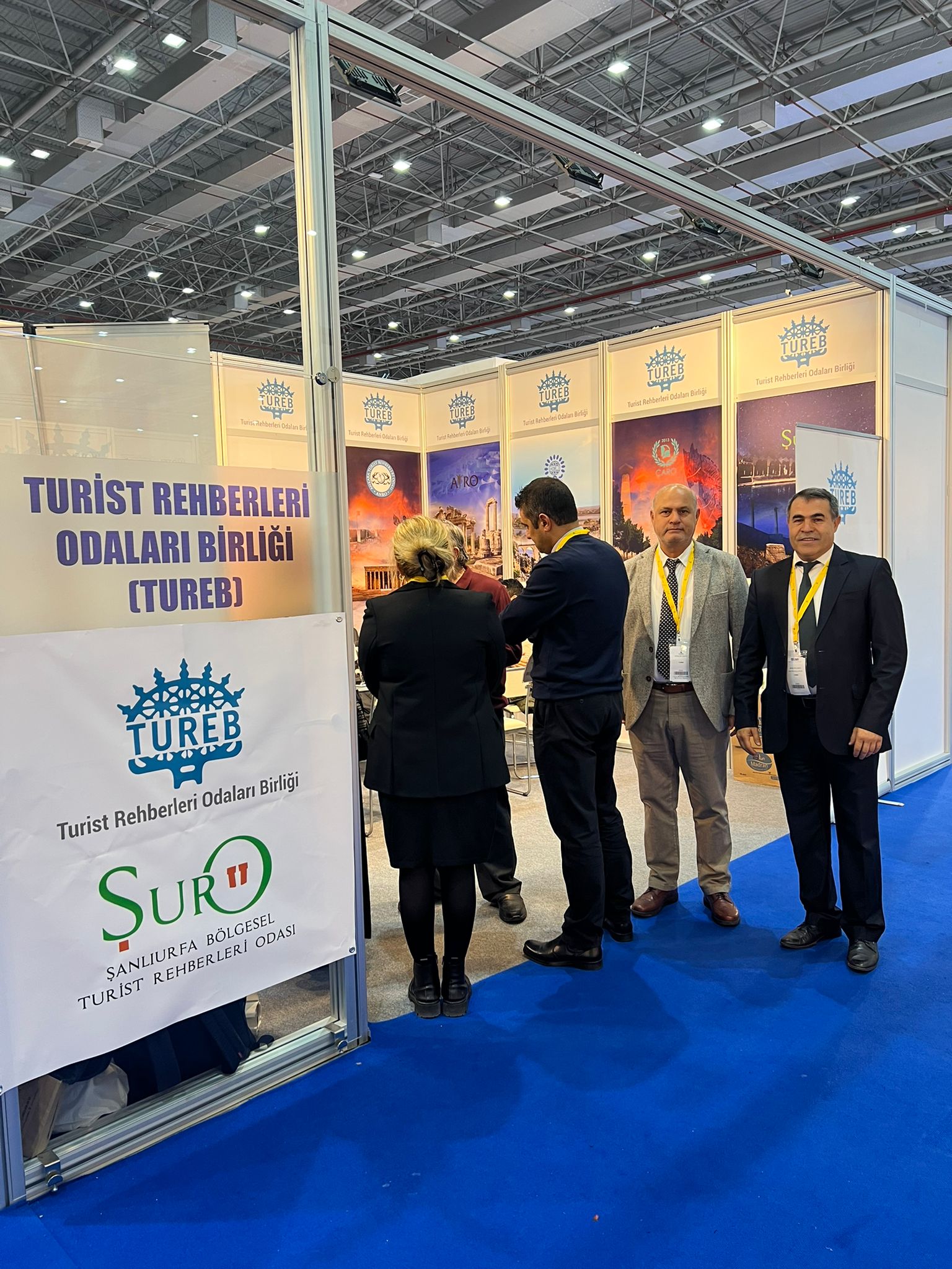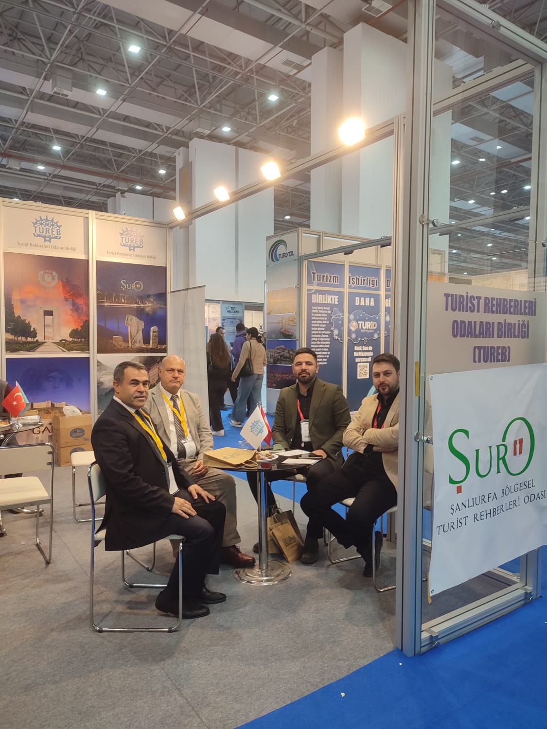 Türkiye'nin ikinci büyük turizm fuarı olarak kabul edilen İzmir Turizm Fuarı 3/5 Aralık 2025 tarihleri arasında düzenlendi. Turizm sektör temsilcilerini ve turizm paydaşlarını bir araya getiren 19. İzmir Turizm Fuarında Şanlıurfa'yı Şanlıurfa Bölgesel Turist Rehberleri Odası ŞURO temsil etti. TUREB Turist Rehberleri Odaları Birliği, İZRO İzmir Turist Rehberleri Odası ve ŞURO Şanlıurfa Bölgesel Turist Rehberleri Odası 19.İzmir Turizm Fuarında Stand açılmış ve turizm sektör temsilcileri, turizm paydaşları, otelciler, turizm taşıma firmaları, turizm tedarikçileri, seyahat acenteleri, turist rehberleri, üniversitelerin turist rehberlik öğrencileri tarafından yoğun bir şekilde ziyaretçilerimizi ağırladık. Tureb Turist Rehberleri Birliği başkanı Abdülkadir TANRIDAĞLI, TUREB Denetim Kurulu başkanı Müslüm ÇOBAN, ŞURO Şanlıurfa Bölgesel Turist Rehberleri Başkanı Müslüm AKKAY, İZRO İzmir Turist Rehberleri Odası başkanı Ayça KESİCİ Fuarda görevli olarak bulundular. ŞURO Şanlıurfa Bölgesel Turist Rehberleri Odası varlığıyla 19. 19.İzmir Turizm fuarında Şanlıurfa'yla birlikte güneydoğu ve Doğu Anadolu Bölgesi'nde temsil etmiş olduk.