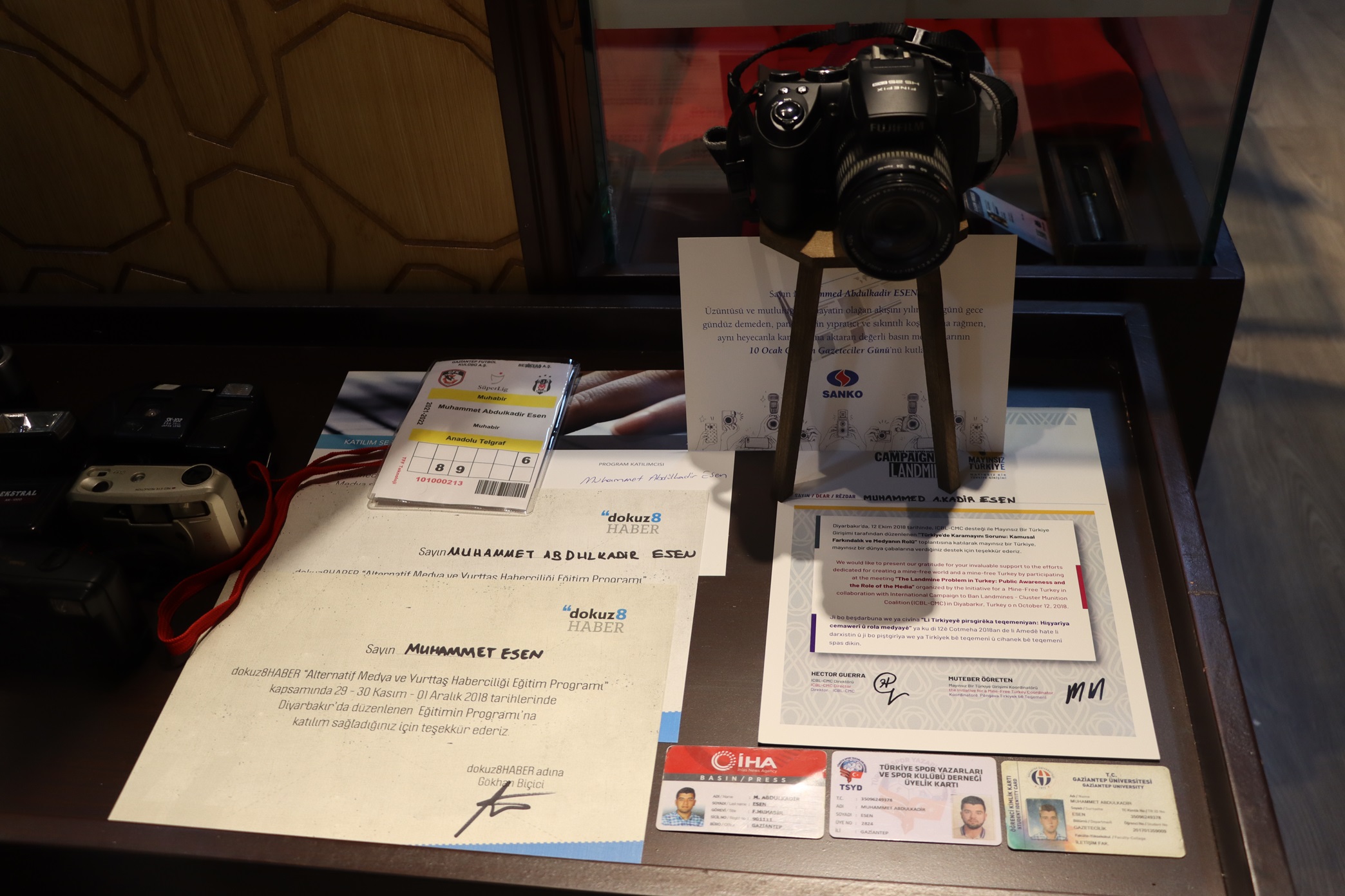 kullandıkları fotoğraf makineleri, kameralar, basın kartları, akreditasyon