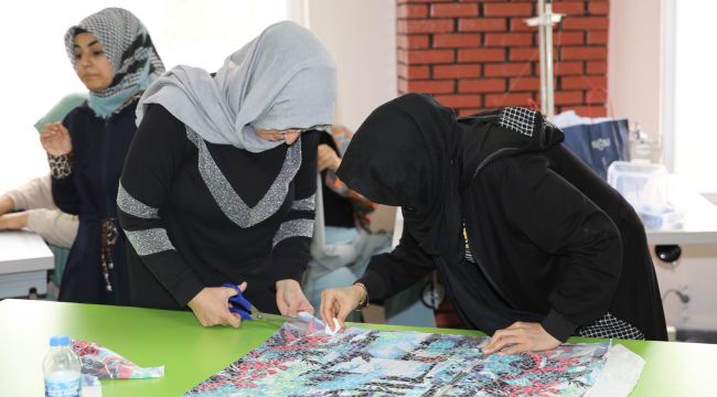 Mahallesinde bulunan kurs merkezinde kadınlar açılan giyim ve mefruşat