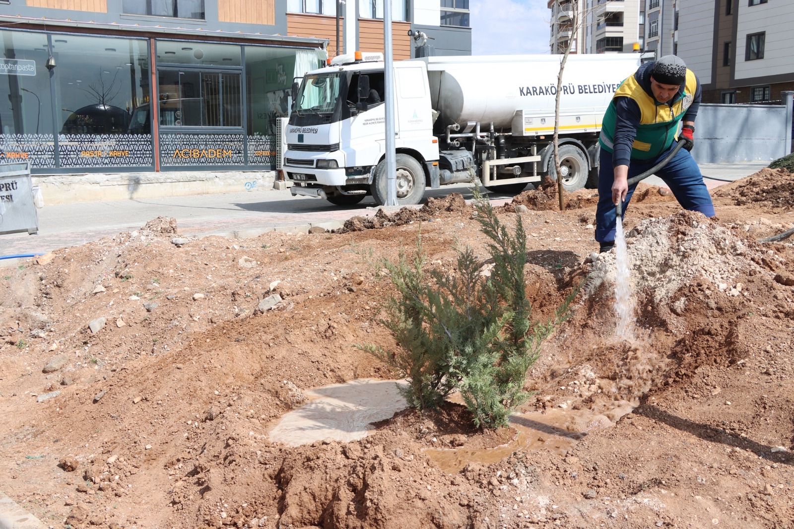 Ağaç ekim programına Karaköprü Belediye Başkan Vekili Bakır Kama ile Belediye Başkan Yardımcısı Ömer Faruk Arslan da katıldı.