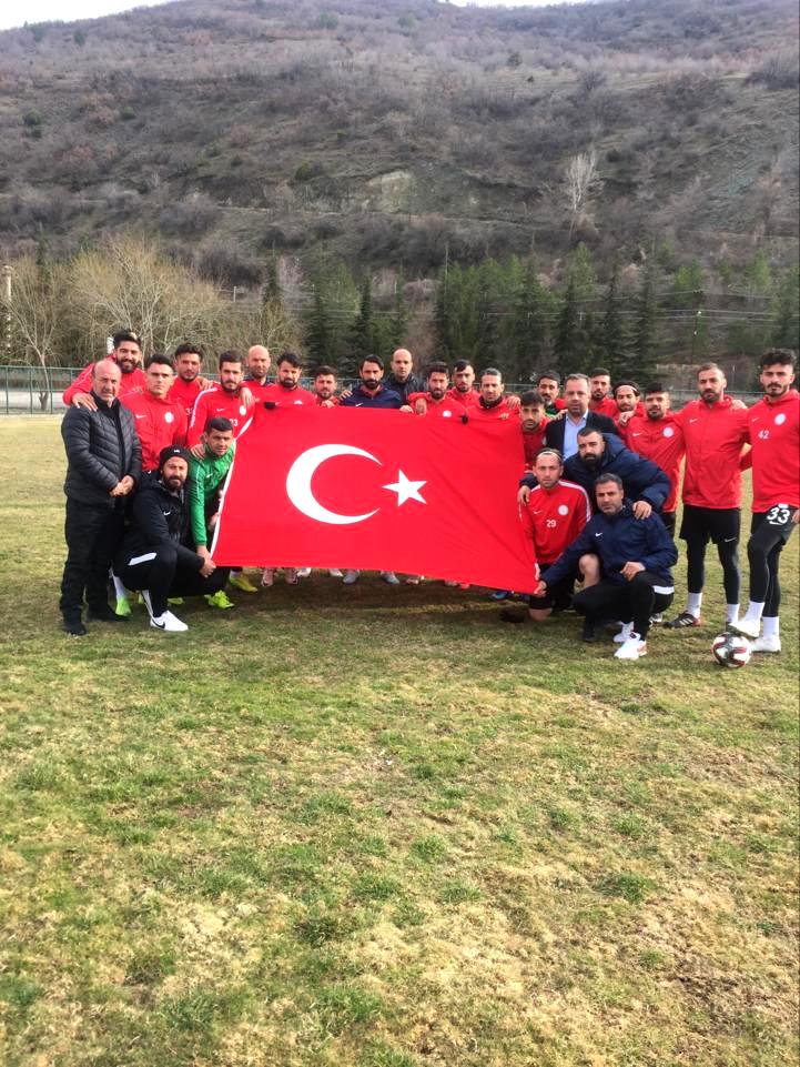 yaptı. İdman öncesinde İdlib şehitlerimiz için saygı duruşunda bulunan Karaköprü Belediyespor ekibi,