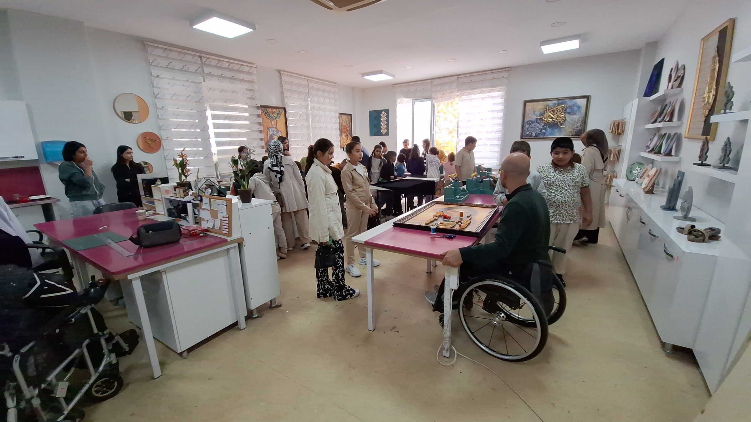 burada atölye çalışmalarına katıldı. Engelli bireylerin atölye çalışmalarında