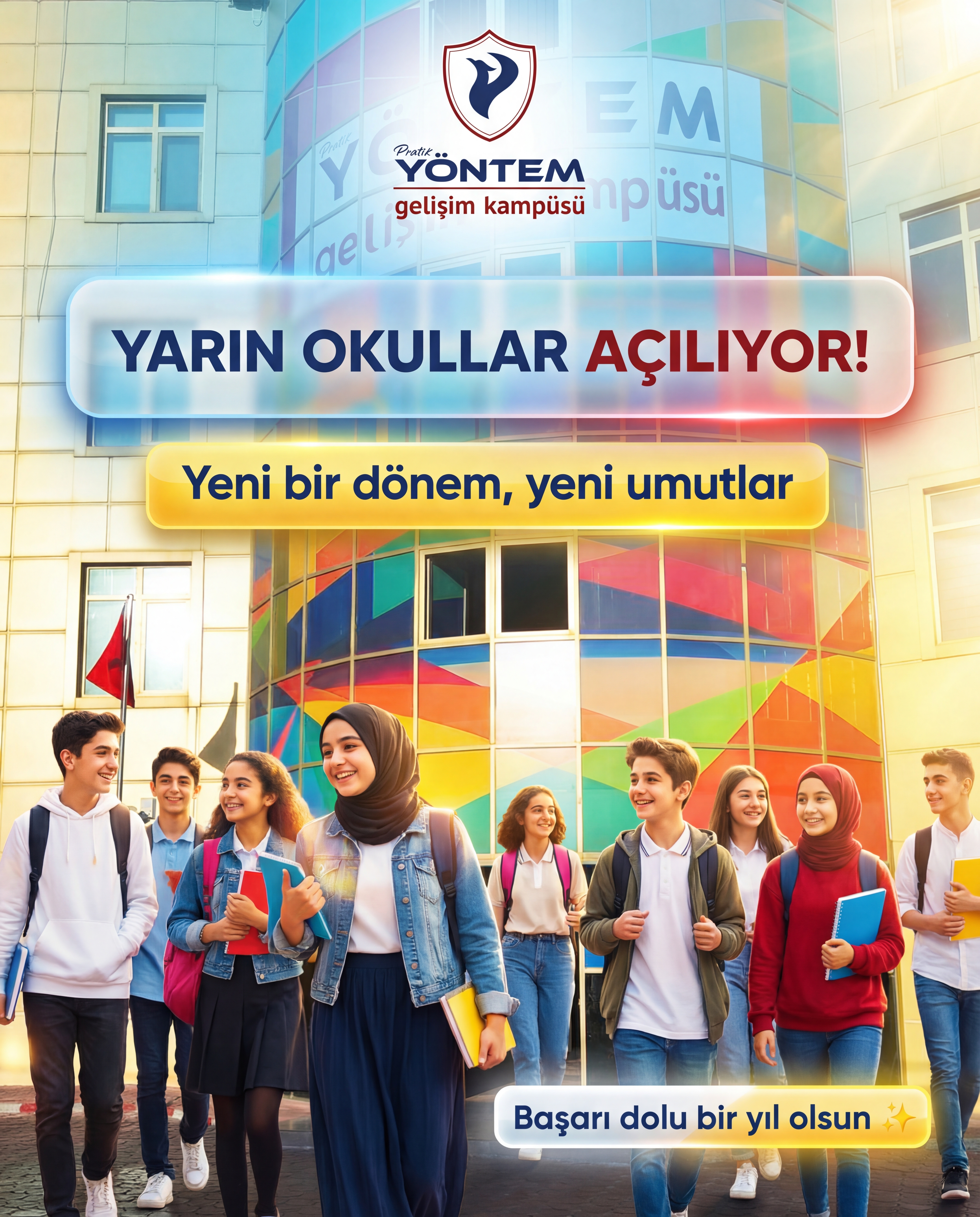 Yarın okulların açılmasıyla birlikte Pratik Yöntem Gelişim Kampüsü’nde yeni eğitim döneminin heyecanı yaşanıyor. Yeni dönem; yeni hedefler, yeni başlangıçlar ve yeni umutlarla karşılanıyor.