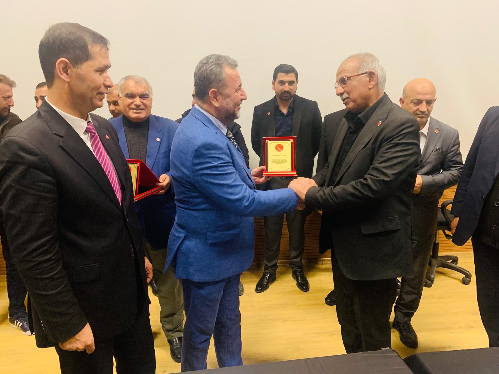 Plaket alan ilçeler Eyyübiye, Viranşehir, Akçakale ve Hilvan olurken, plaket alan İl Başkan Yardımcıları ise Muhittin Kaplaner, Ali Anuk ve Vedat Keşküş oldu.