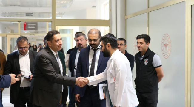 İl Sağlık Müdürü Solmaz, hizmet başkanları, hastane yönetimi ve İl sağlık müdürlüğü teknik ve bilişim ekibi ile birlikte hastanenin tüm birimleri, Ameliyathane, yoğun bakımlar, Anjiyografi ünitesi, Endoskopi ünitesi, poliklinikler, yataklı birimler, depolar, gebe okulu işitme tarama (odyo) birimi ve Acil servisi ziyaret ederek incelemelerde bulundu. Hastane yönetimiyle yapılan toplantıda vatandaşa sunulan sağlık hizmet sunumunda aksaklık olmaması için daha çok gayret göstermelerini istedi.